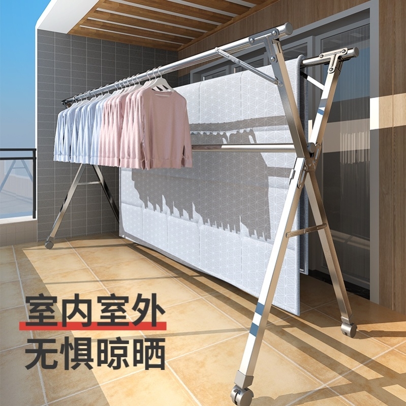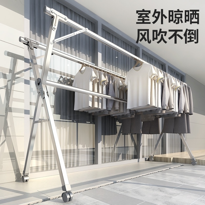 Outdoor stainless steel clothes hanger floor retractable folding double-lever bedroom small multifunctional balcony sunburn