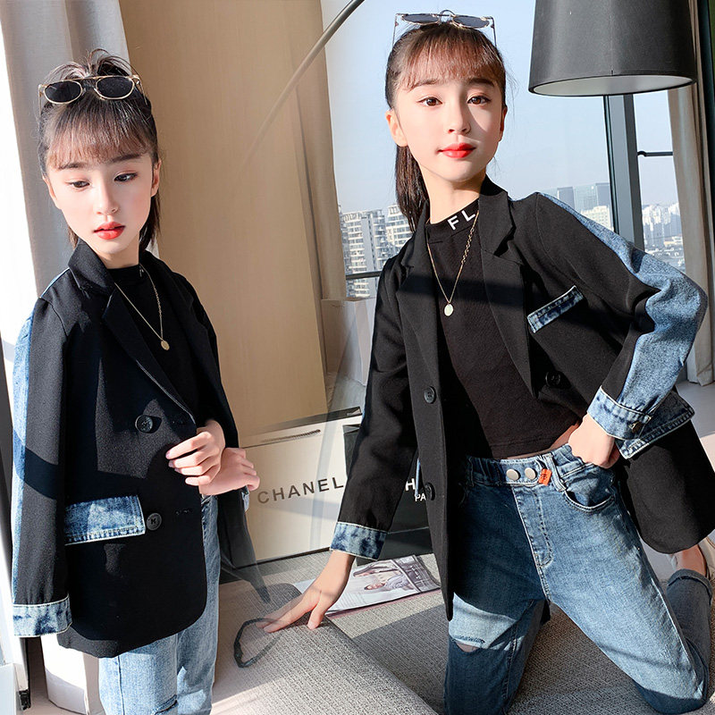 Girl Suits Jacket Jeans Stitching Spring Autumn Clothing 2022 New Children Men and women The same Western suit CUHK Scout