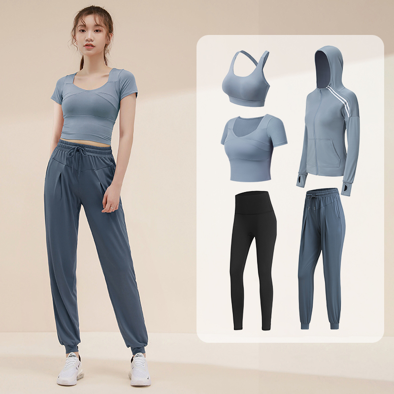 Blue Five Pieces Purple Long Sleeves Black Tight Pants Two Sets Purple Long Sleeves Grey Skintight Pants Two Pieces Blue Three Sets Purple Three Sets (Grey Purple Skintight Pants) Purple Three Sets (Black