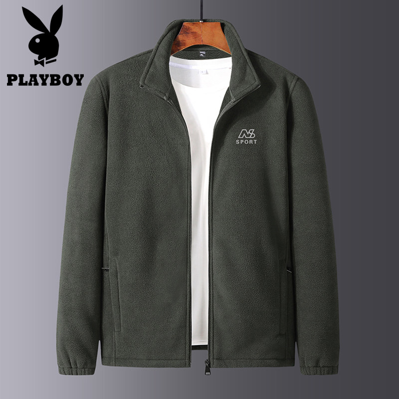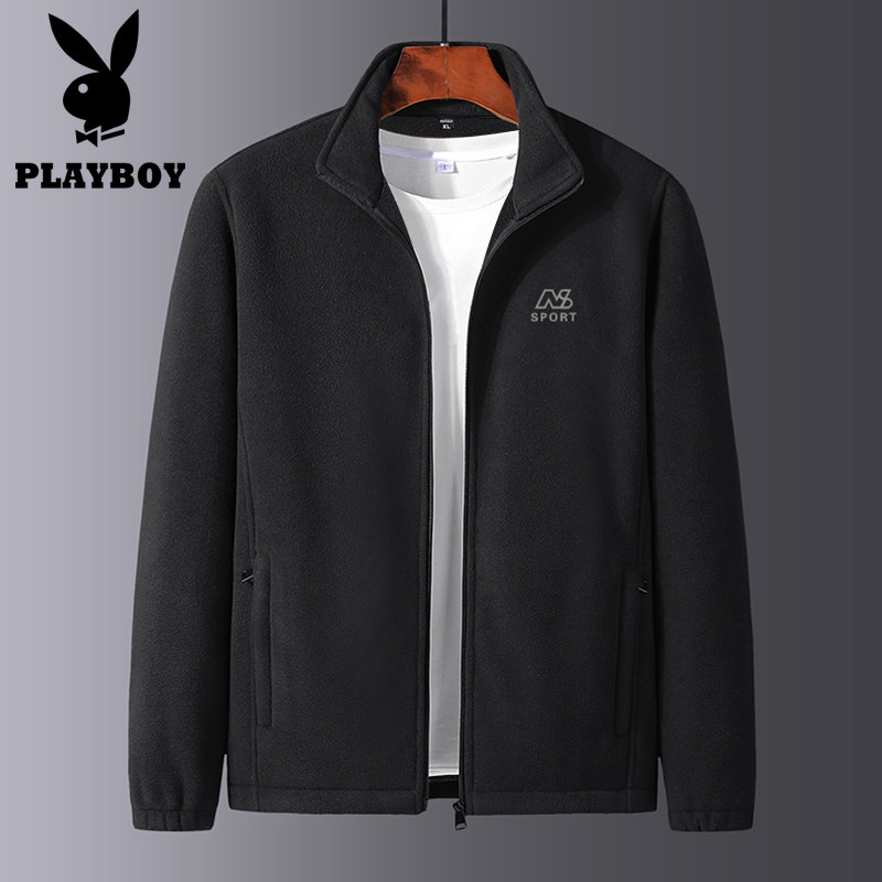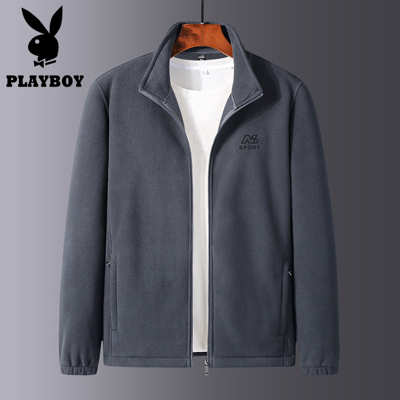 Playboy 2021 spring and autumn men's cardigan fleece thick cotton T middle-aged and elderly polar fleece stand-up collar jacket dad wear