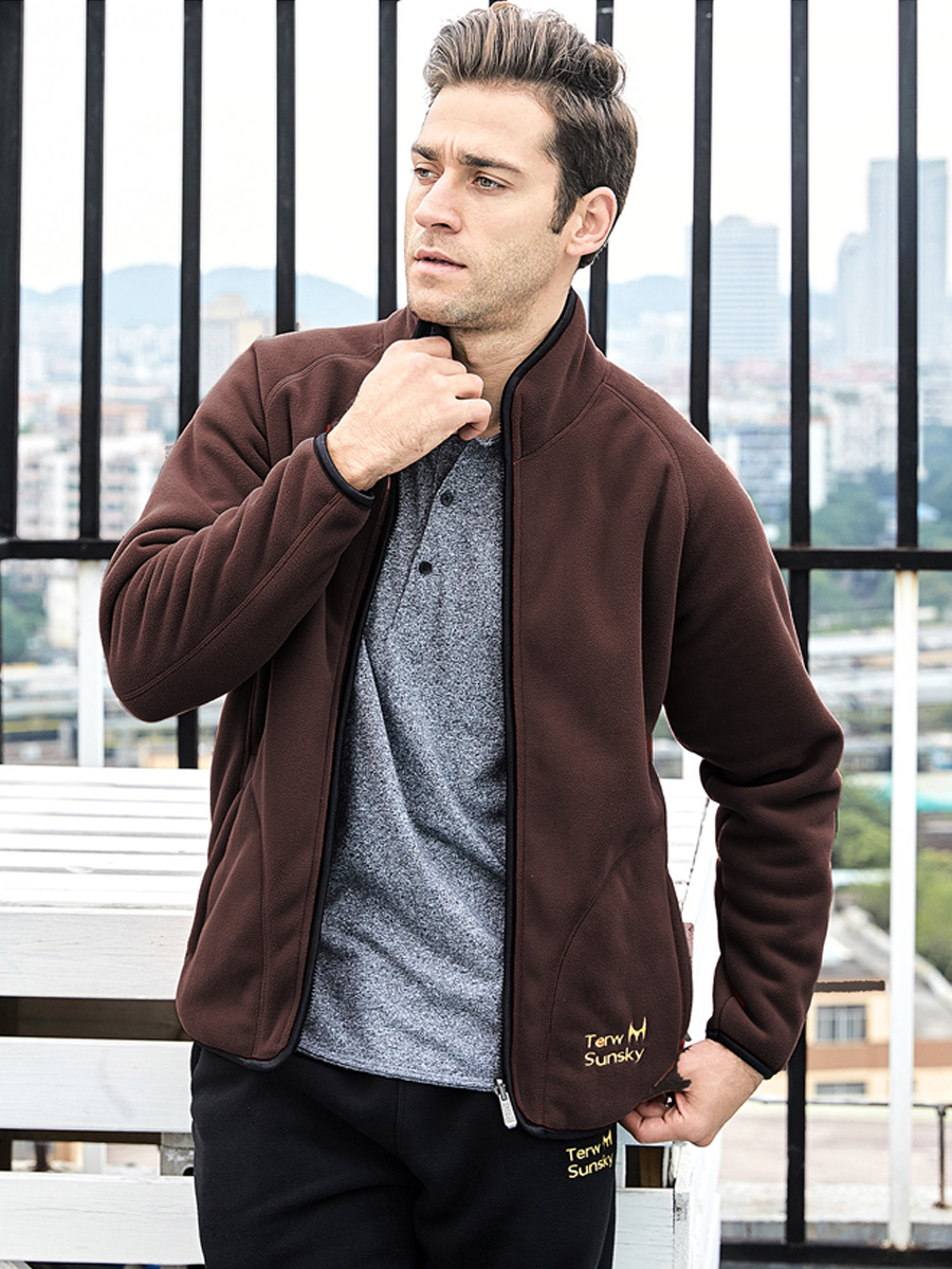 Autumn and winter outdoor thickening fleece fleece casual sports cardigan sweater middle-aged and elderly polar fleece men's jacket