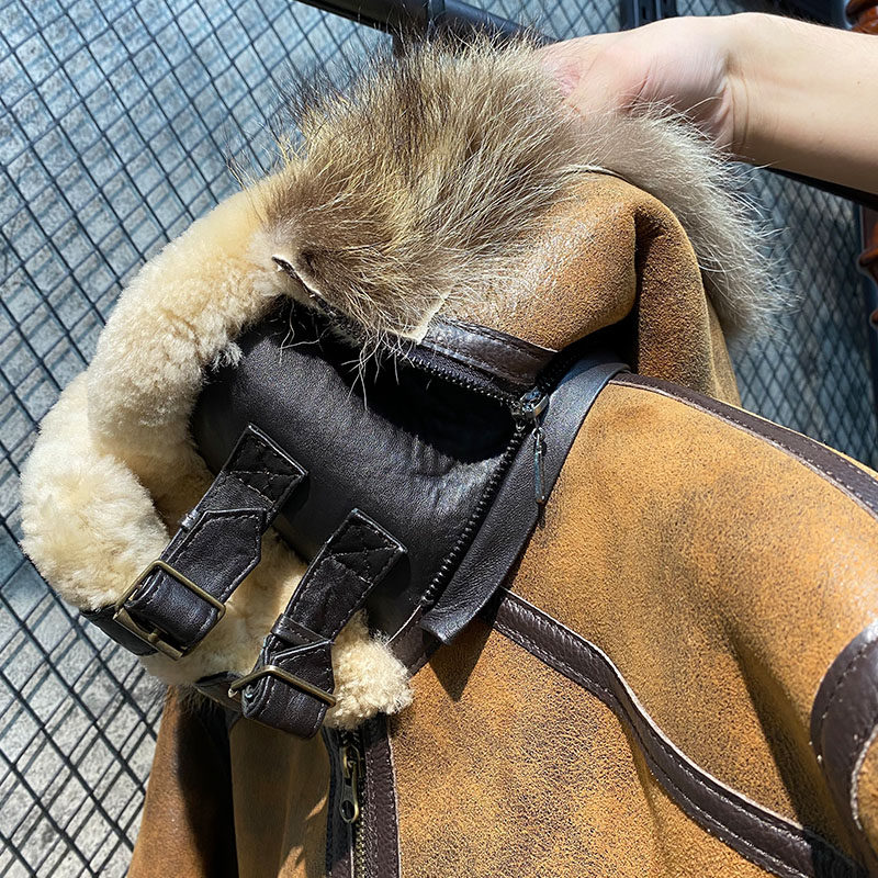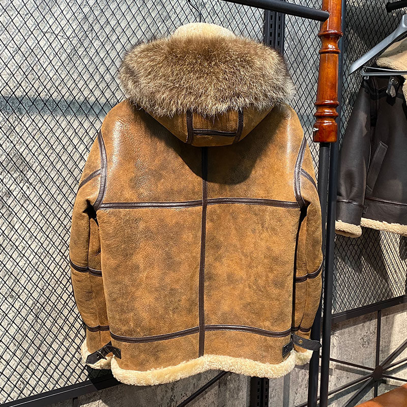 2022 Aristocratic Mepi Original Ecological Sheepskin and Fur One Men's Genuine Leather Jacket Hooded American Raccoon Collar Winter Jacket