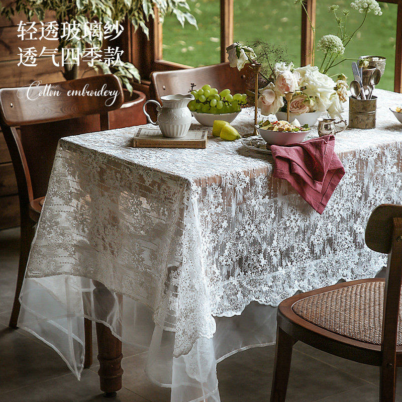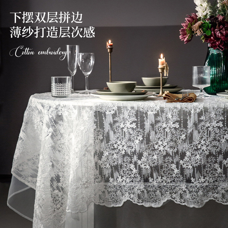 UARA (light yarn) Nordic high-end lace round table tablecloth white cover French tablecloth household tablecloth