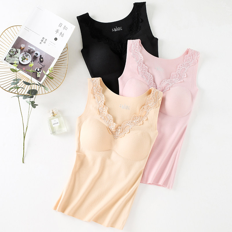 Japan's hot and velvet warm vest women plus velvet thickened with chest pad no-wear bra bottoming shirt underwear autumn and winter