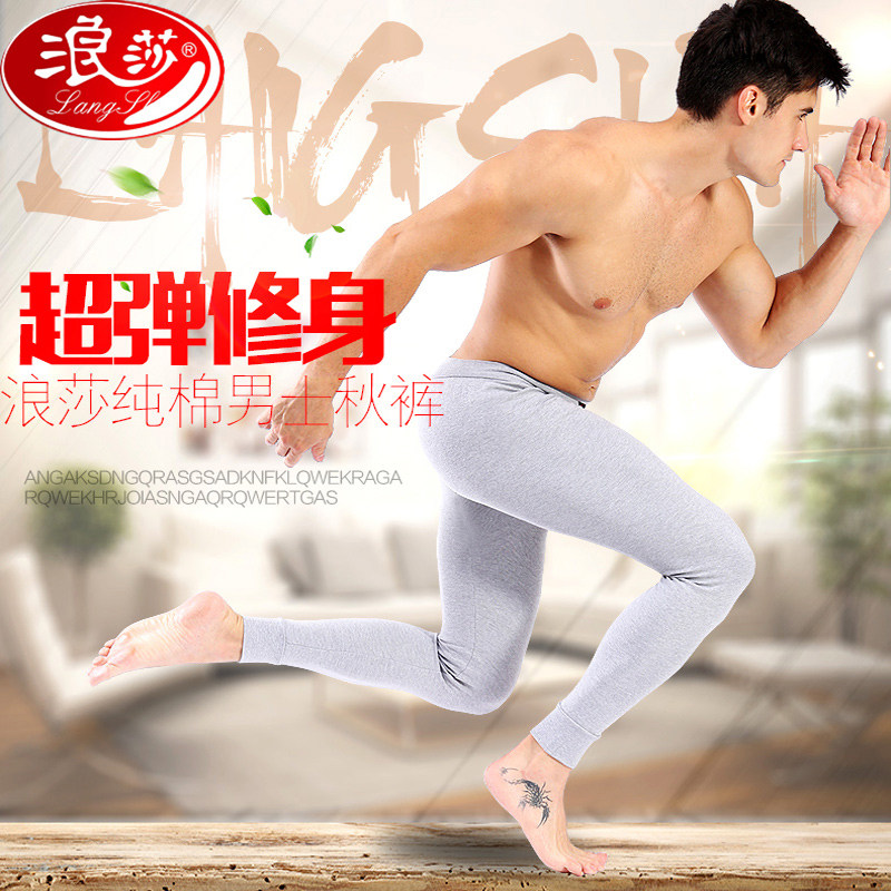 Langsha men's pure cotton long johns one piece thin bottoming warm pants slim fit cotton underpants inner cotton wool trousers autumn and winter