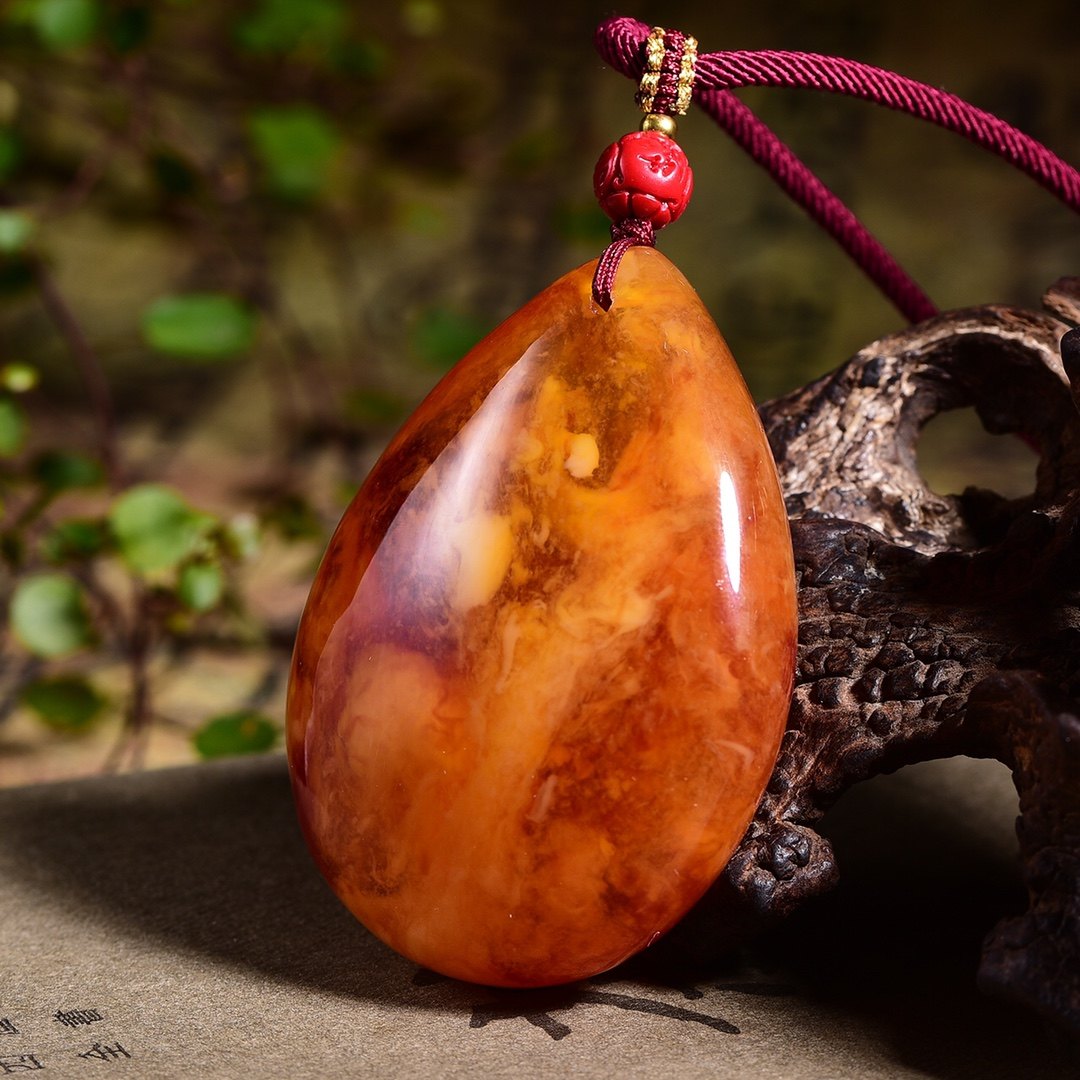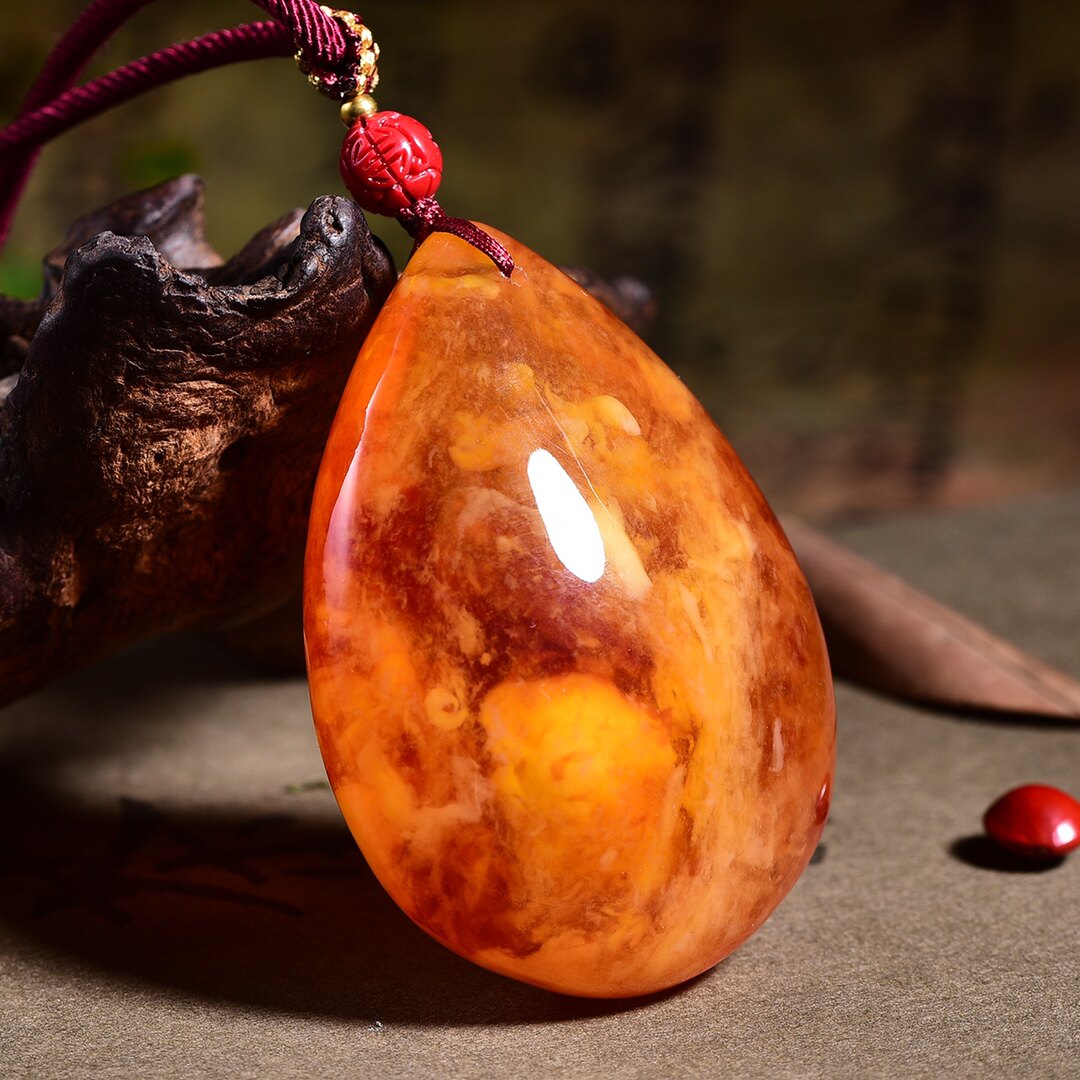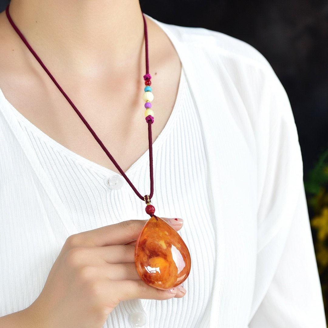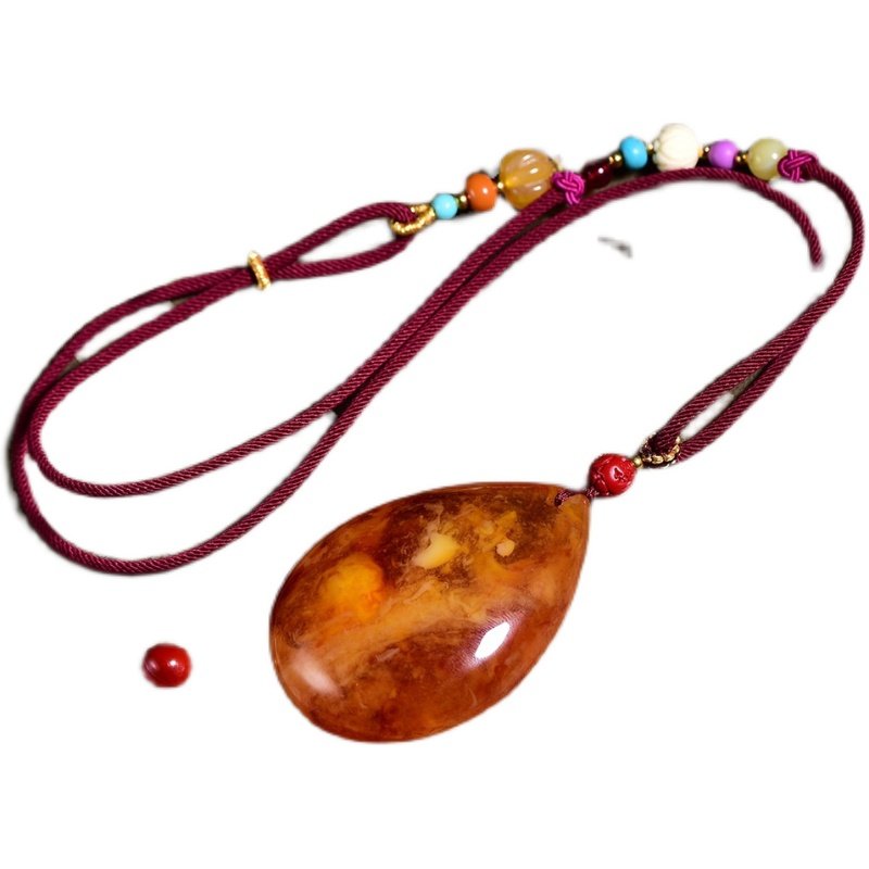 Chicken Oil Red And Old Honey Wax Water Drop Selfie Pendant Sweater Necklace Women's Natural Amber Blood Poke Necklace Pendant
