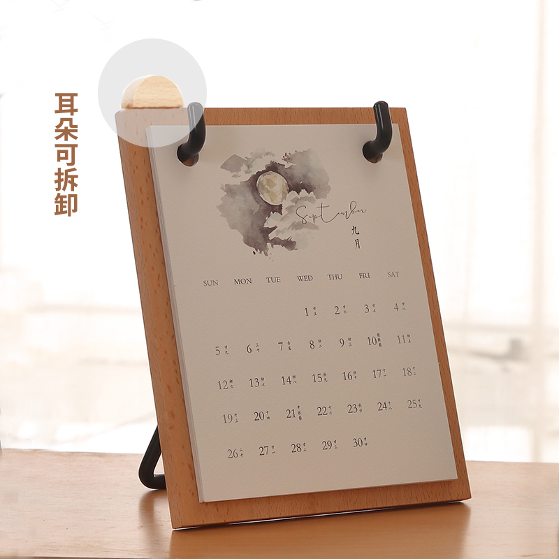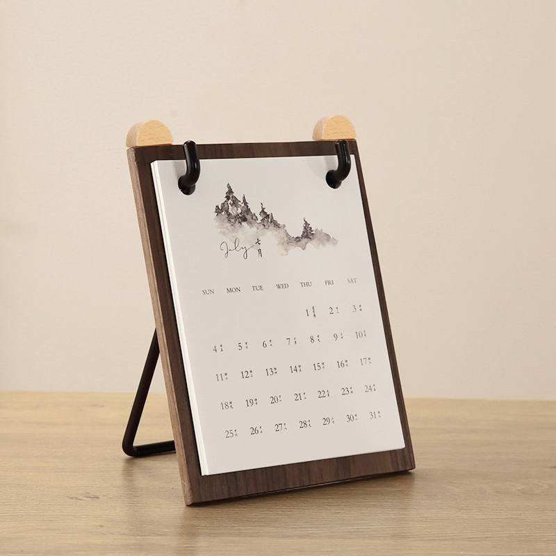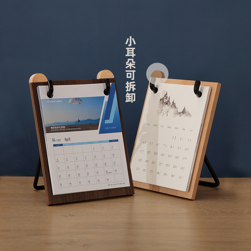 2022 Wooden Enterprise Desk Calendar Customization Creative Photos Simple Office Desktop Calendar Rack Calendar Customization
