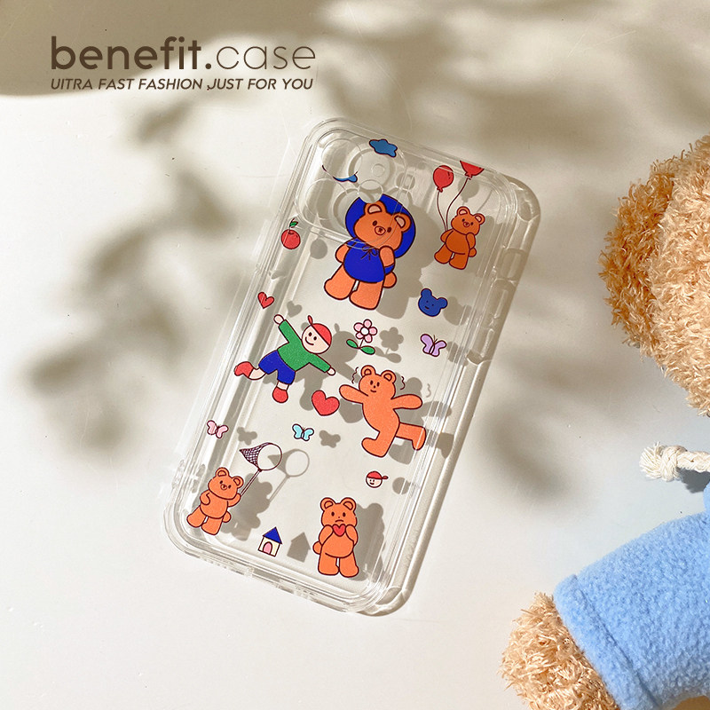 Benefit Gram Love Cartoon Small Bears apply Apple 13promax full transparent mobile phone protection shell iphone12mini protective sheath xsmax little fresh x