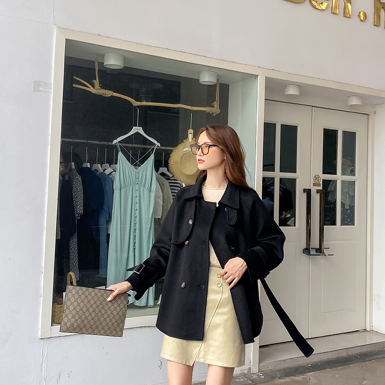 Double-sided, zero cashmere big coat girl short 21 autumn winter new loose Korean version small sub wool coat fashion