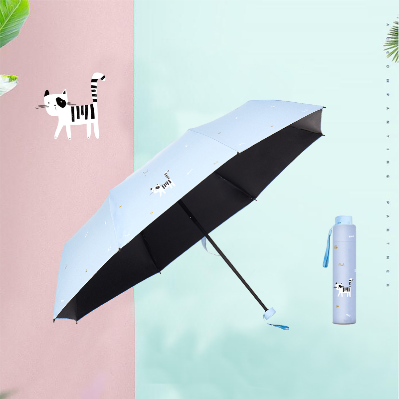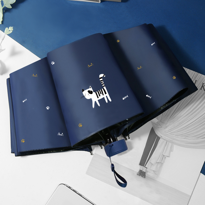 Red leaf line down the same section-Landlord's cat clear Umbrella sunscreen Anti-UV dual-use sunshade Folding Black Rubber Female
