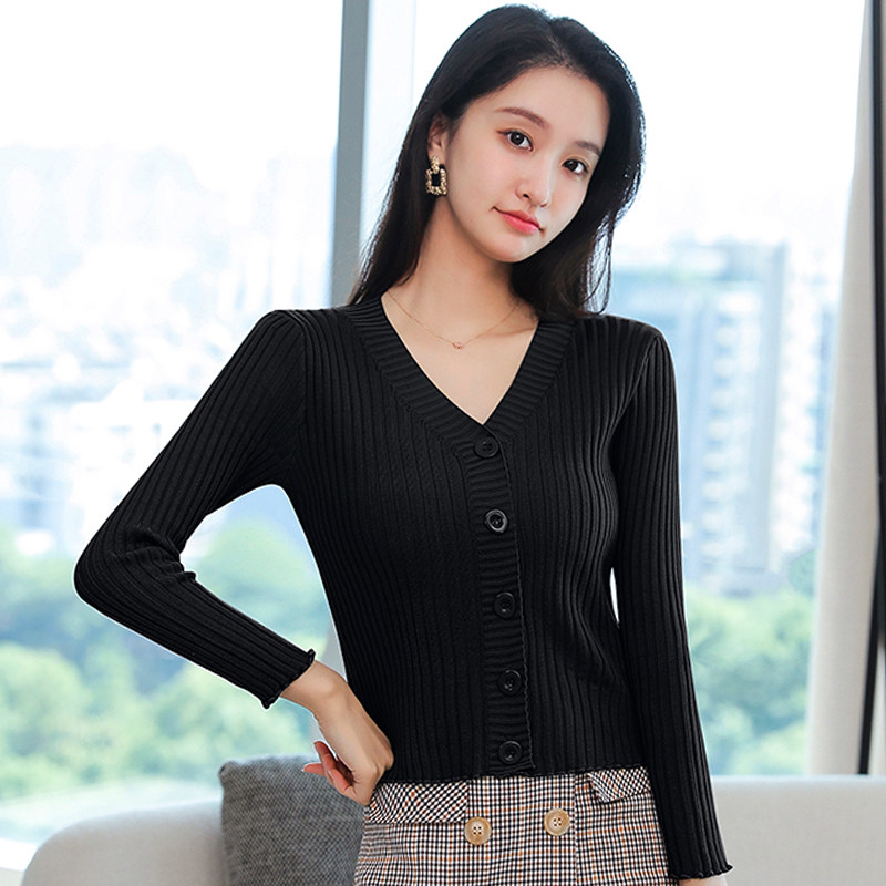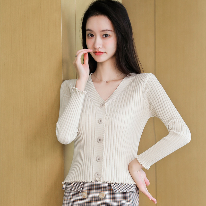 2022 Early spring V collar knit cardiovert woman spring and autumn slim fit small subshort jacket lady sweater jacket