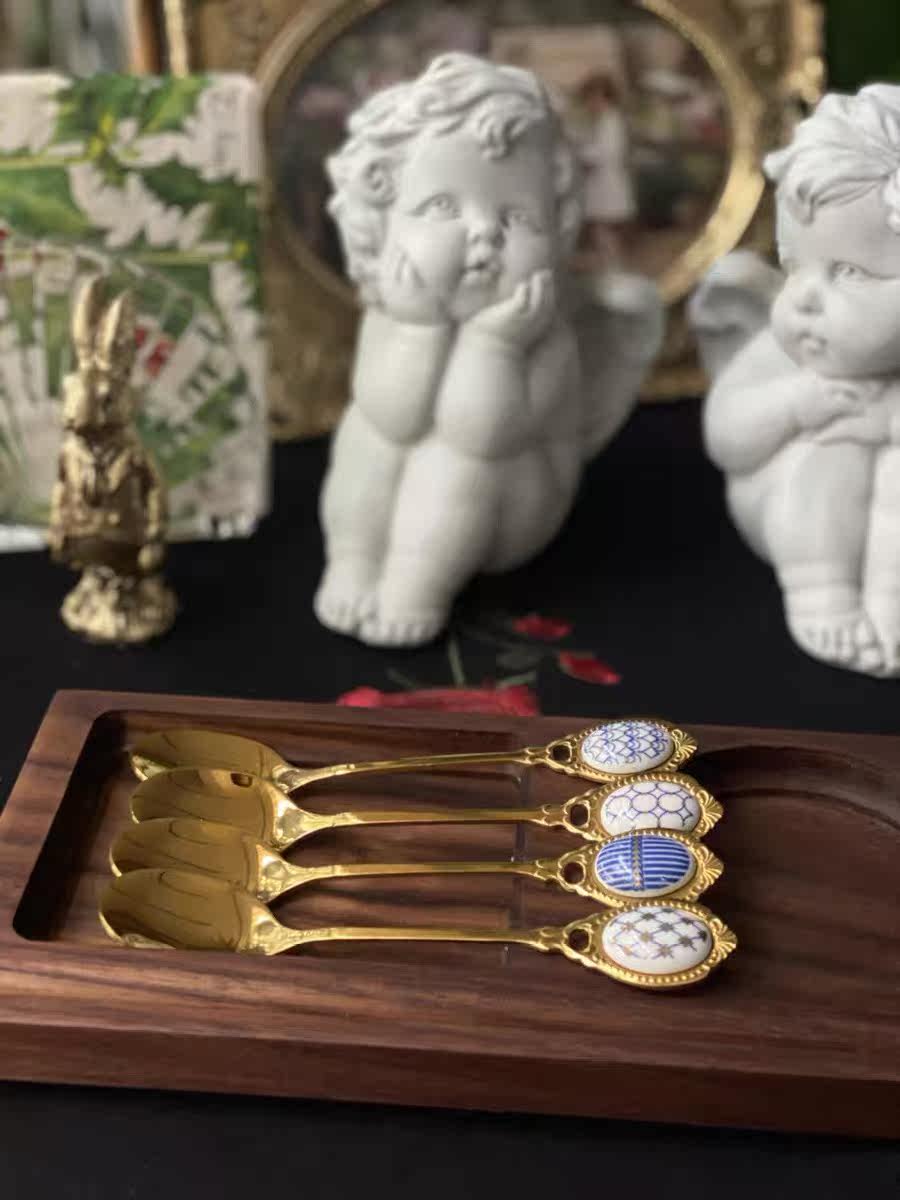 Red Brick House Onevoice Vintage Gold Ceramic Spoon Dessert Spoon Set of Four - Taobao
