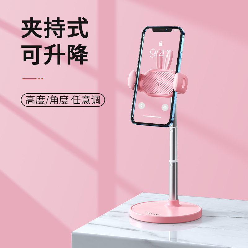 Pink-mobile phone paragraph (free lifting and solid not wobable) can be 360 ° rotated white-mobile phone (free lifting and solid without shaking) can be 360 ° rotated with small rabbit-powder (telescopic lift