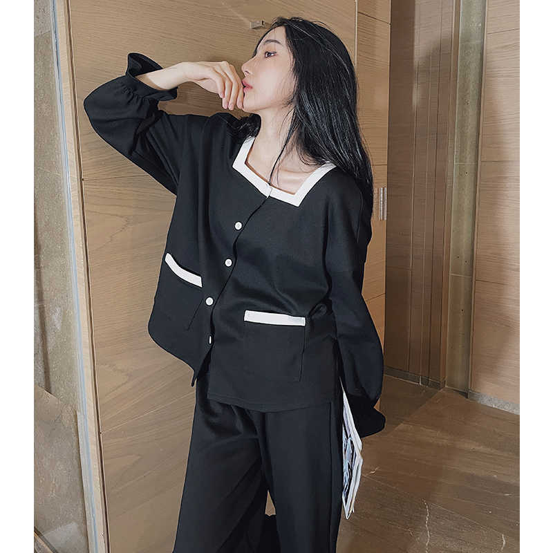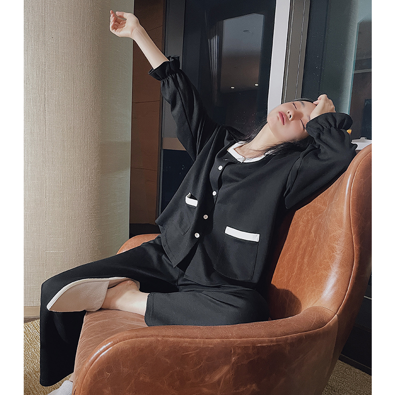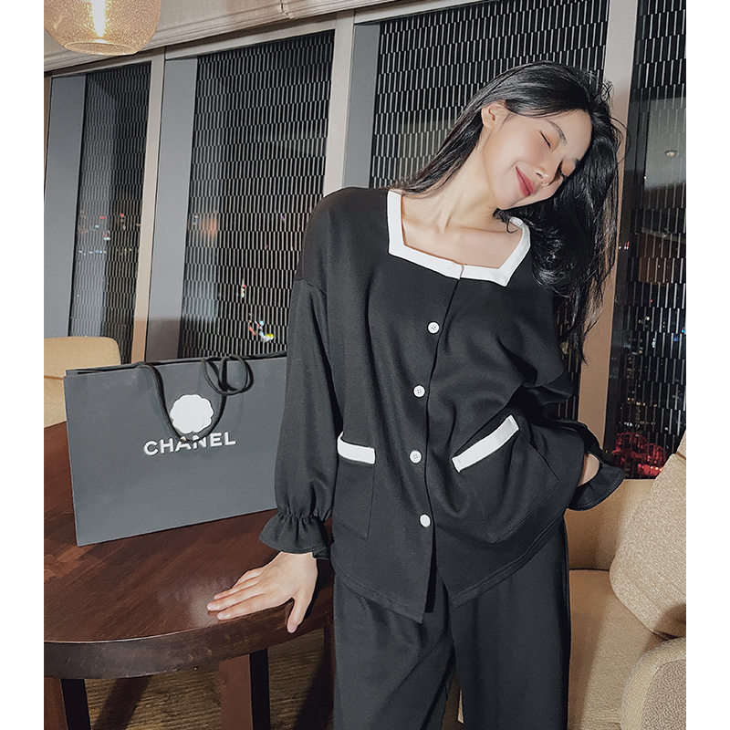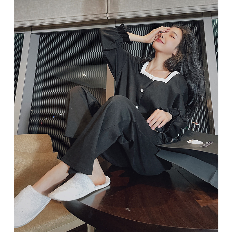 Fashion Square Collar Spring Autumn New Pyjamas Woman Long Sleeve Two Sets Lovers Home Suits Suit Men Outout Doors