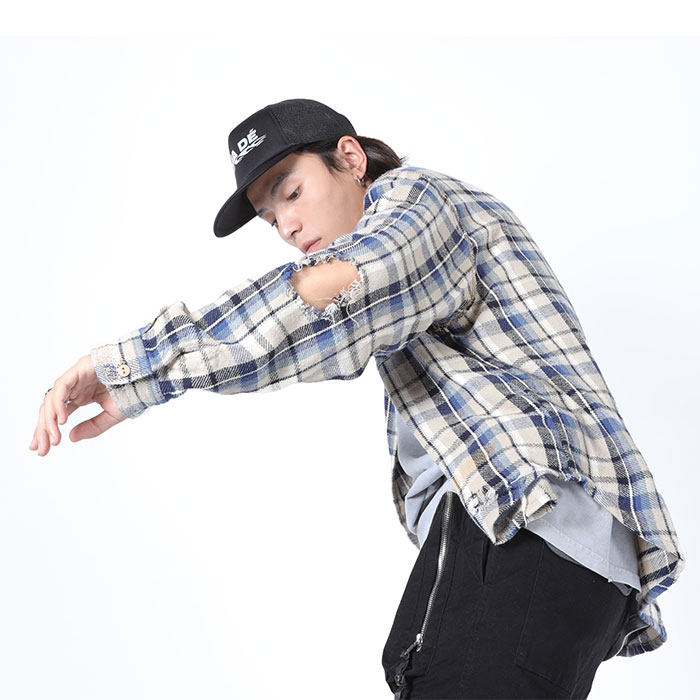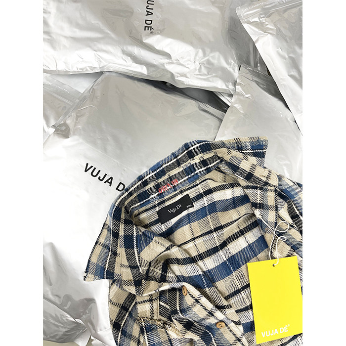 MKSZY Fall Trend Vujade004 Blue Plaid Mill Fur Casual Loose Long Sleeve Shirt Vibe Wind