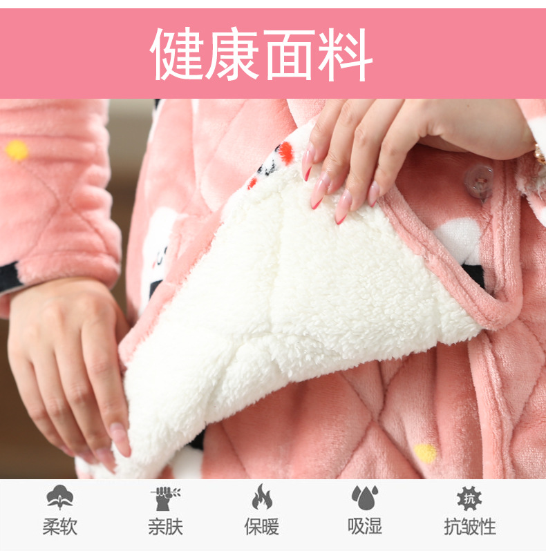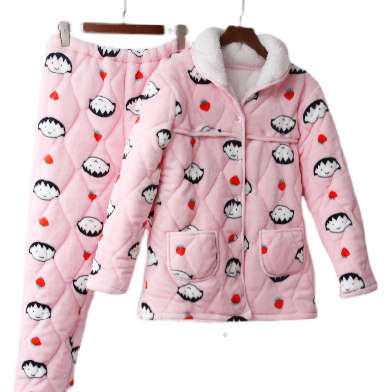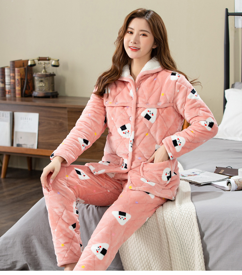 Fertilizer plus size pregnant women's three-layer thickened pajamas winter clothes 200 jins quilted coral fleece warm home clothes 300 jins