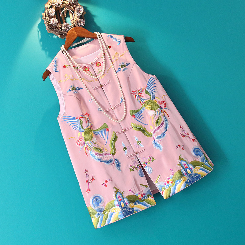 Small Good House 2022 Fall Chinese Wind Woman Costume Round Collar Embroidered Horse Chia Improved Qipao Vest Chinese Horse Pinch