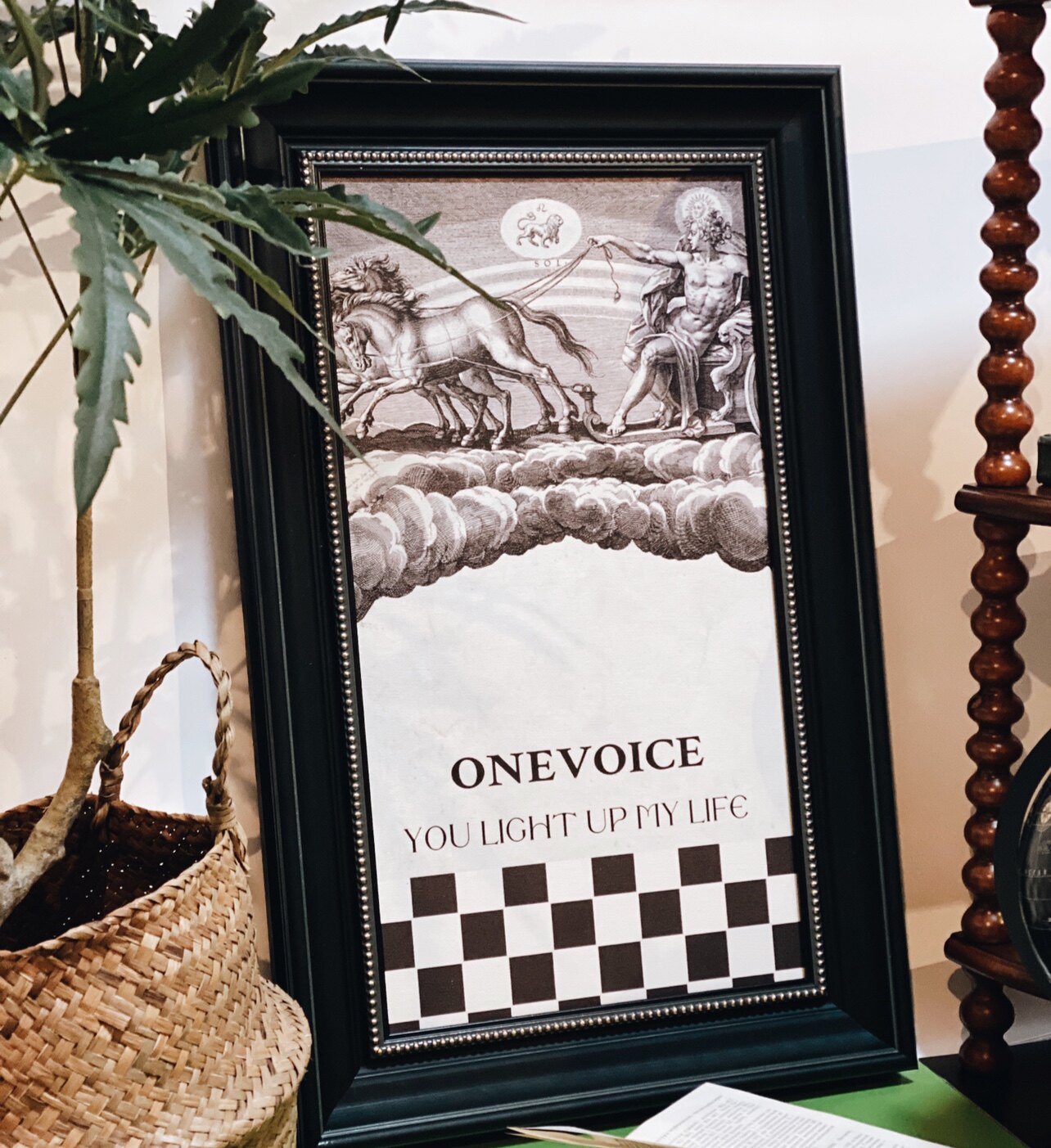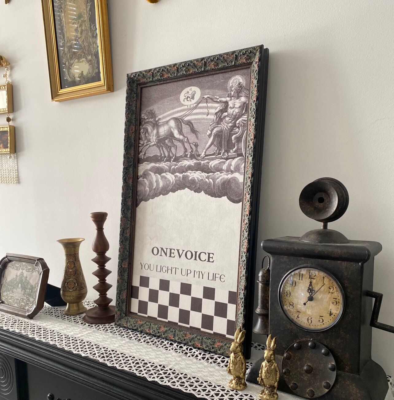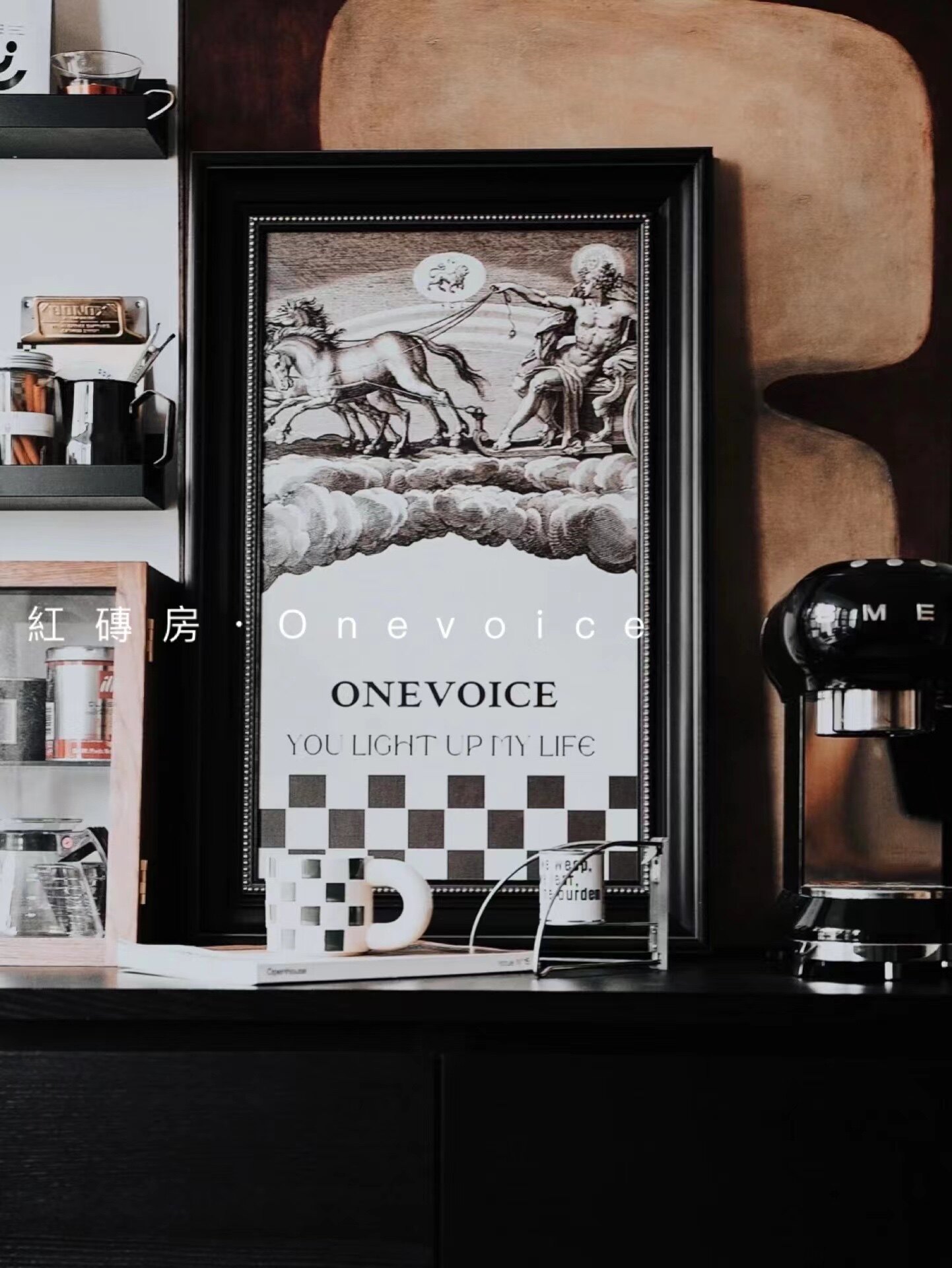 Red brick house Onevoice retro wall hanging black and white checkerboard painting exclusive self-made