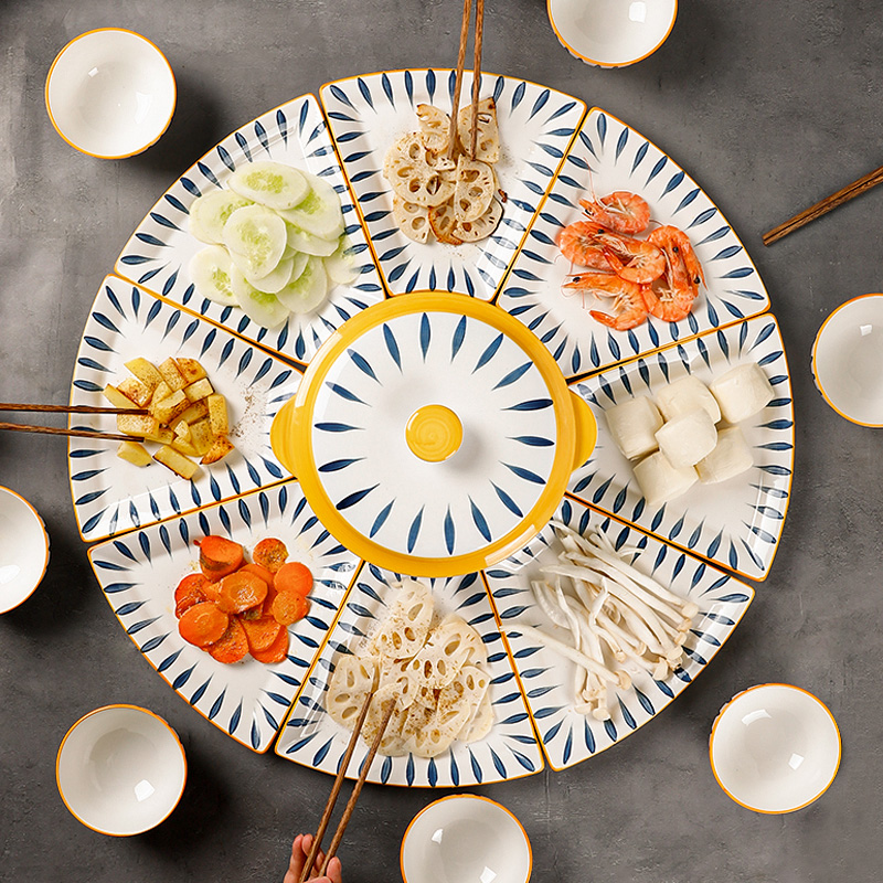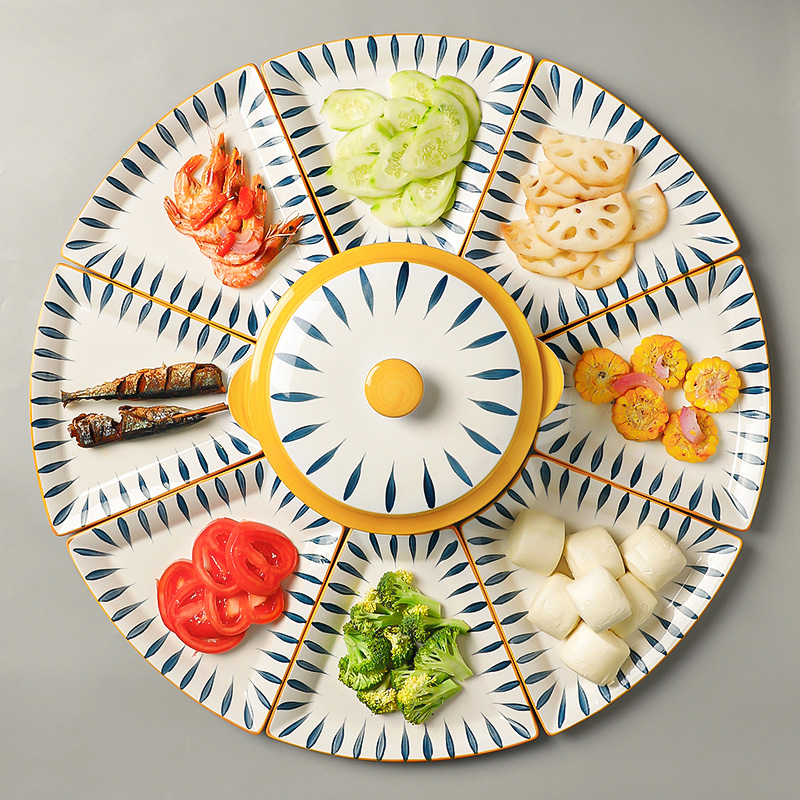 Reunion Parquet Cutlery Combined Bowls Dish Suit Home Day Style Ceramic Plates 2022 New Plate Round Table Dinner Plate