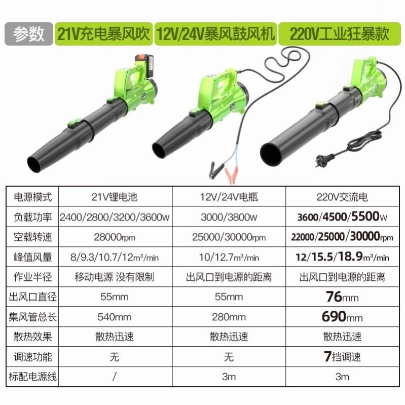 Industrial blower charging high-power 220v soot blower blower 12 24 car leaf blower snow blower