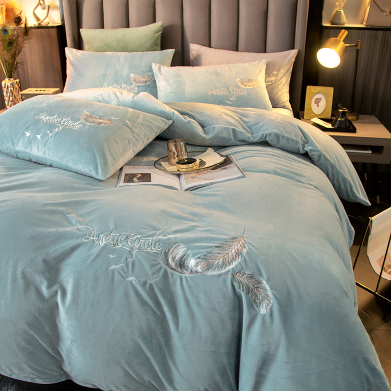 Winter thickened coral velvet four-piece set plus velvet sheets lace quilt cover thickened double-sided milk velvet princess embroidery