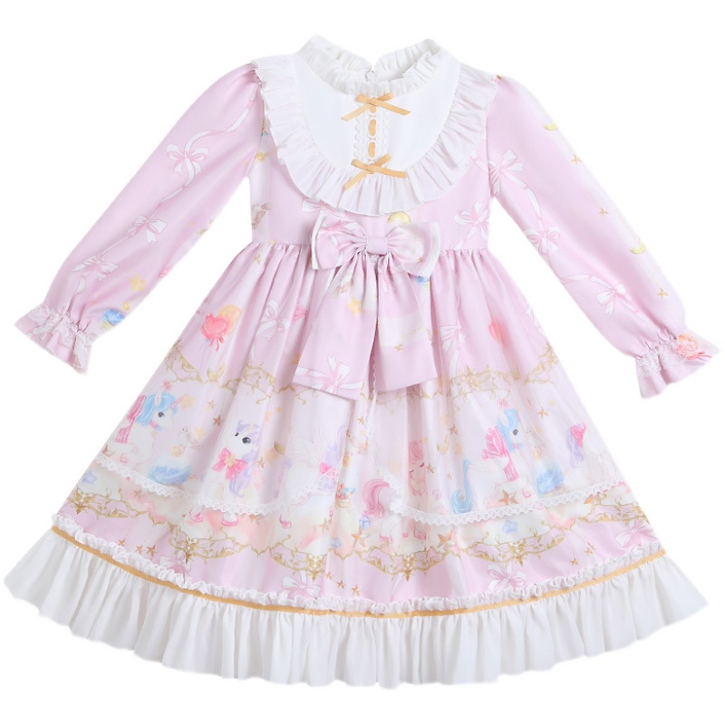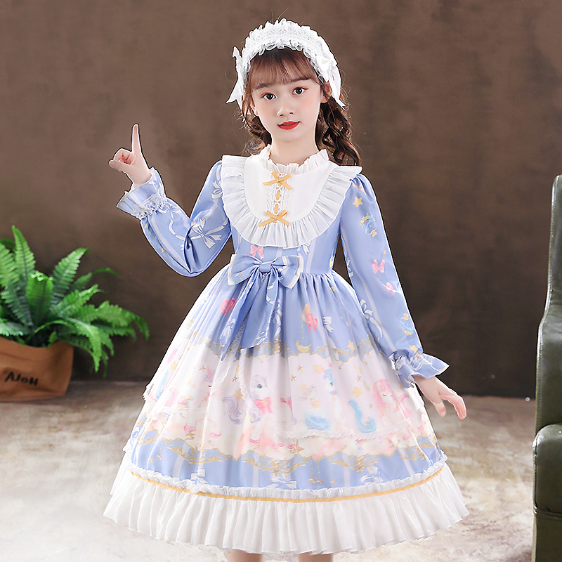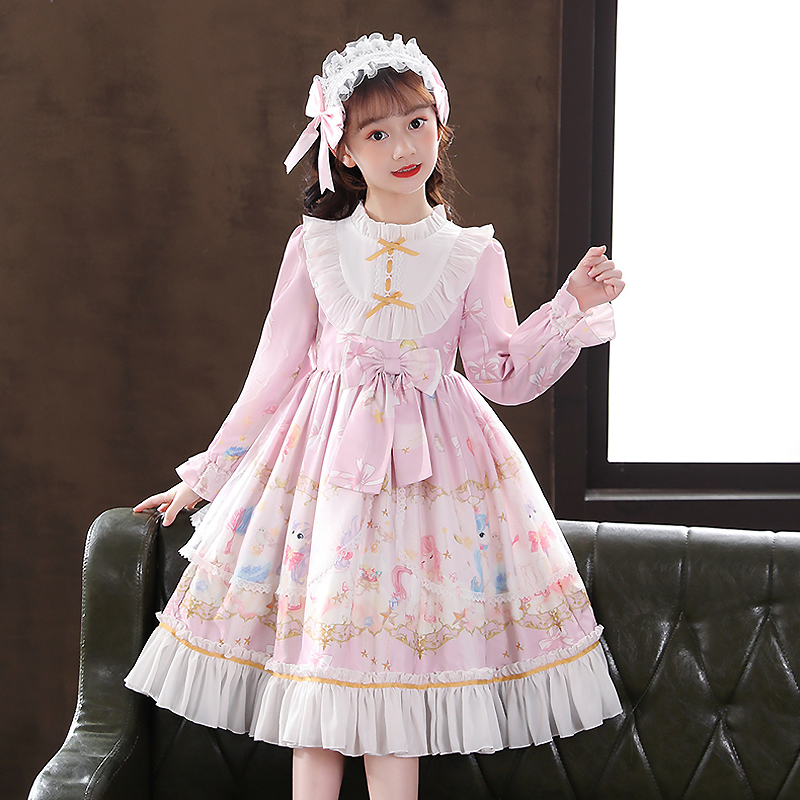 Lolita girls' autumn dress net red princess dress spring and autumn children's long-sleeved dress full set of lolita genuine skirt