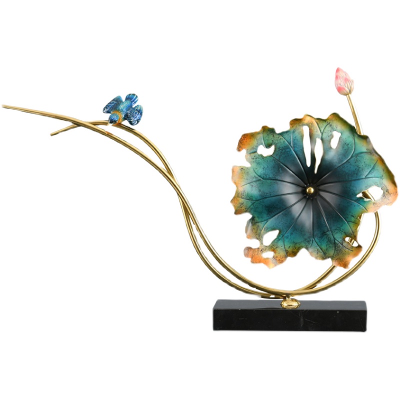 Pure copper lotus leaf furniture new Chinese home lotus decoration living room seating room sea-off TV cabinet Joe relocated gift