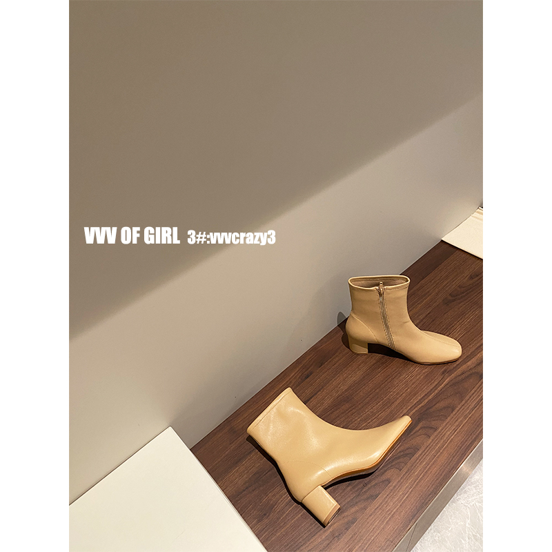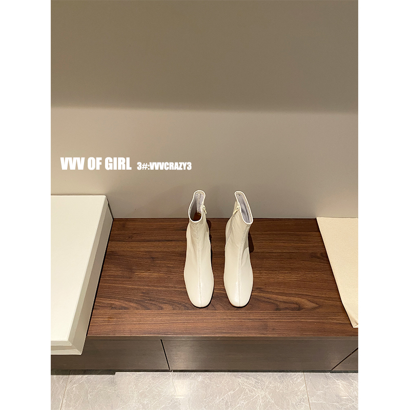 Vvv 8 25 00:00 Classic Upgrade Square Head Thick Heel Stretch Short Boots Women Socks Boots Naked Boots