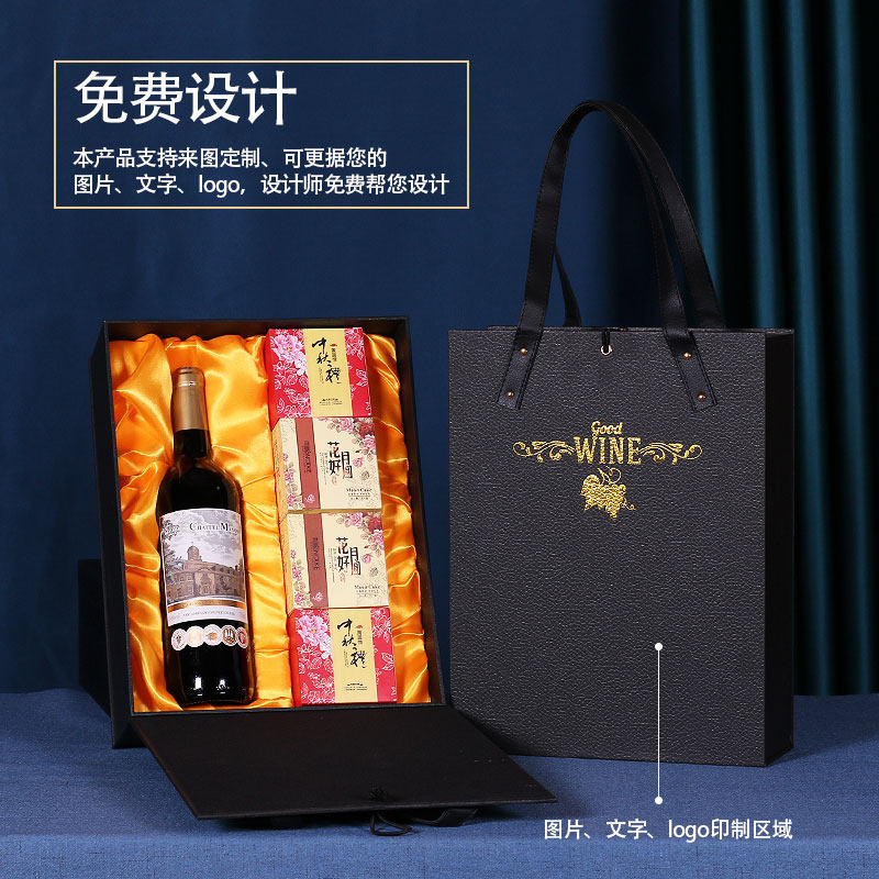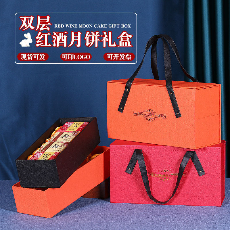 Red Wine Moon Cake Box Cardboard Box MOON CAKE GIFT BOX PORTABLE DOUBLE-SET WINE PACKAGING BOX RED WINE BOX