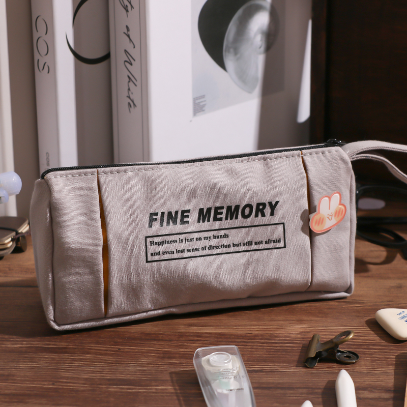 Double-layer multifunctional canvas pencil bag ins high-value student storage stationery box large-capacity portable pencil bag