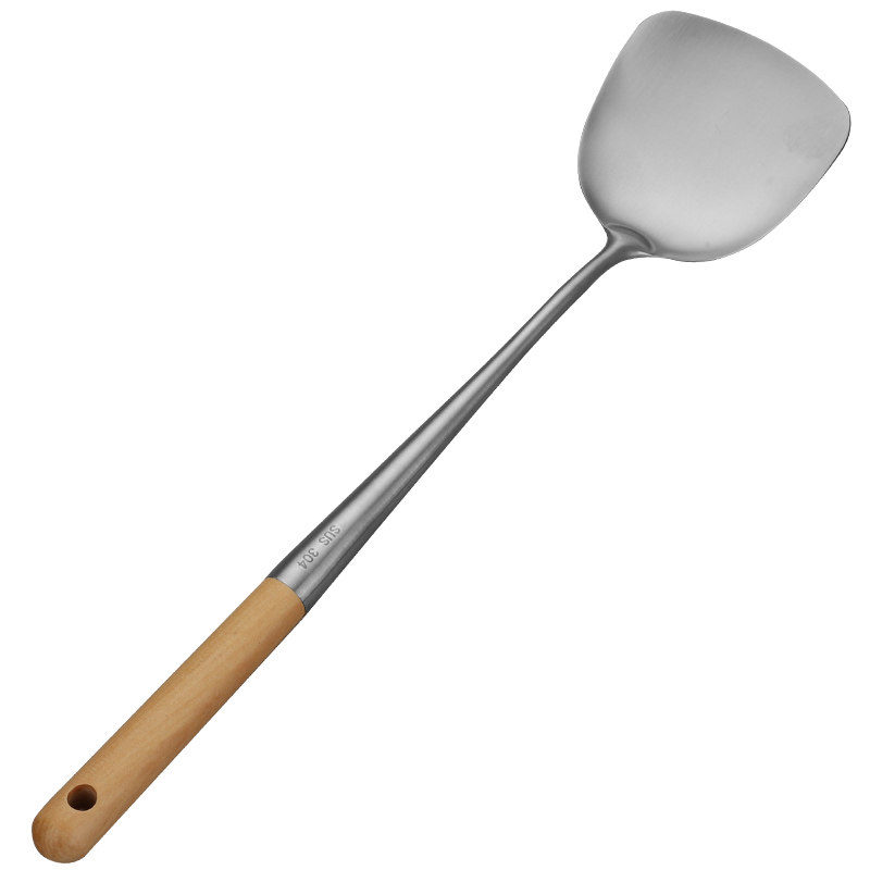 304 stainless steel pan shovel wood handle fried vegetable shovel with long handle home kitchen set lengthened sauttiled frying spoon pan spoon