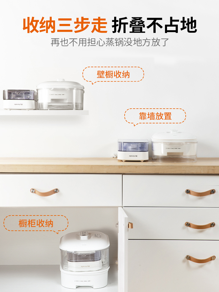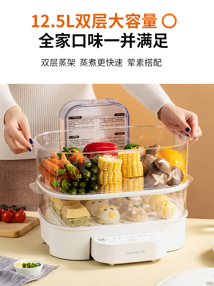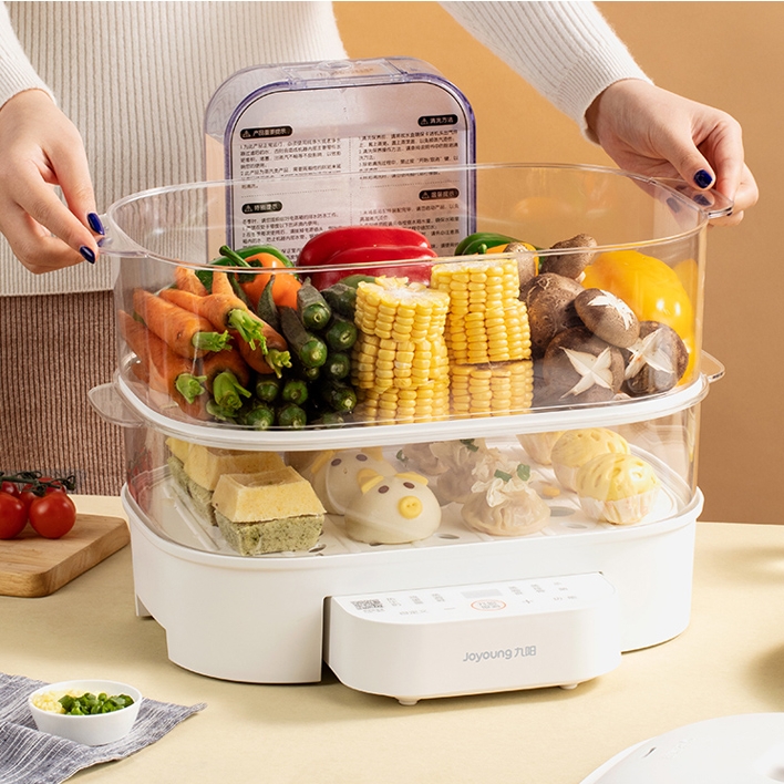 Jiuyang Folding Electric Steamer Multifunction Home Transparent Steam Box Steam Cage Large Capacity Multilayer Steamed Vegetable Steamed Bread DZ01