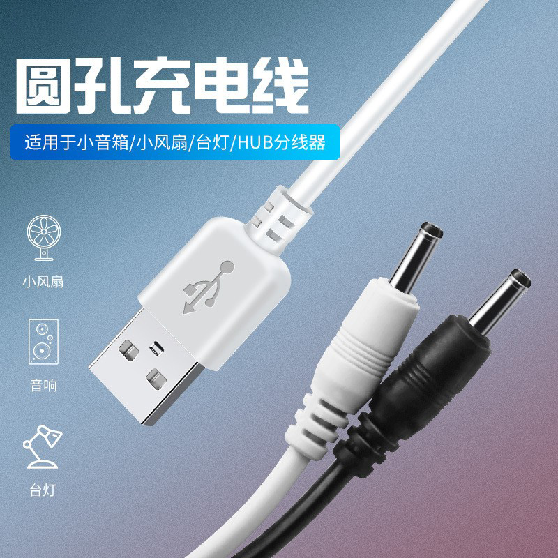USB to DC3 5*1 35mm round hole small speaker charging cable 5v power cable 3 5mm charging cable