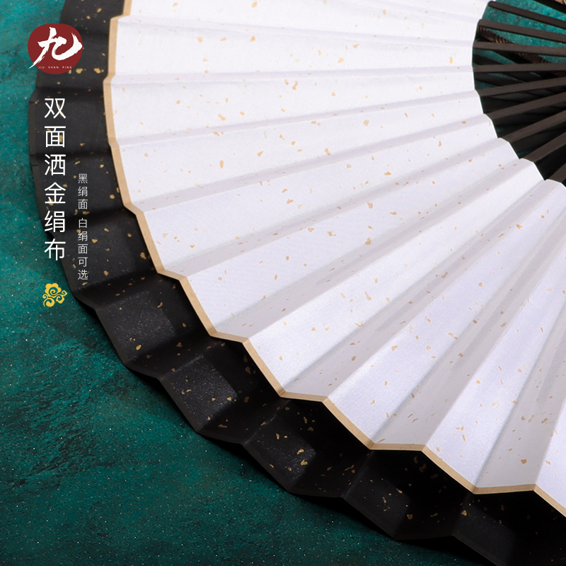 10-inch folding fan with wave and cloud pattern (with white sprinkled gold silk surface) 10-inch folding fan with wave and cloud pattern (with black sprinkled gold silk surface)