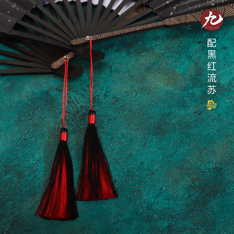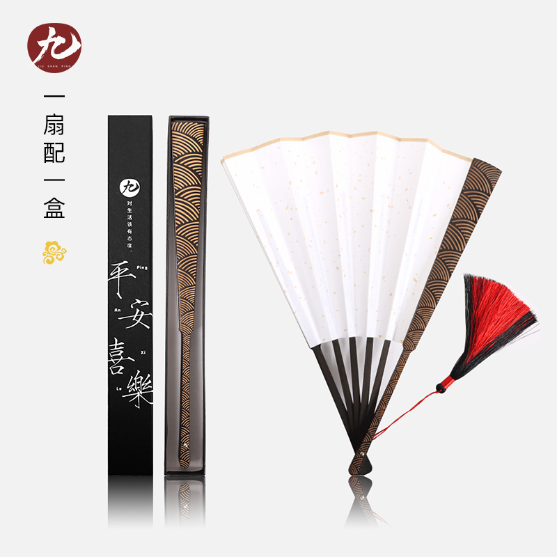 Folding fan ancient style national style blank silk cloth fan surface fan cloud pattern carving pattern fan pendant tassel male and female Hanfu with fan