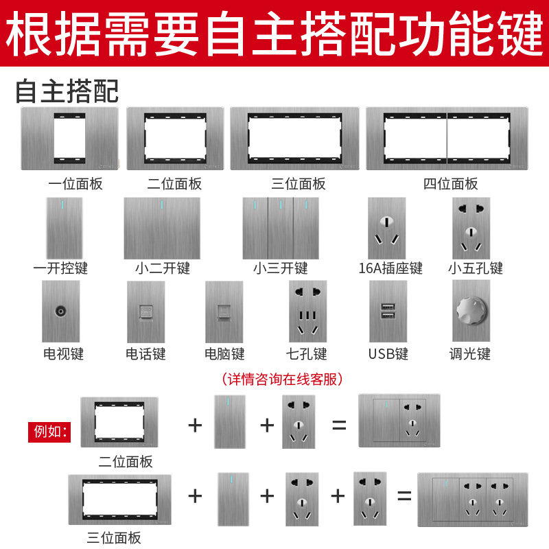 International Electrotechnical Model 118 Brushed Grey Dark Home Switch Socket Wall Panel Small Box Two-digit Phone Computer