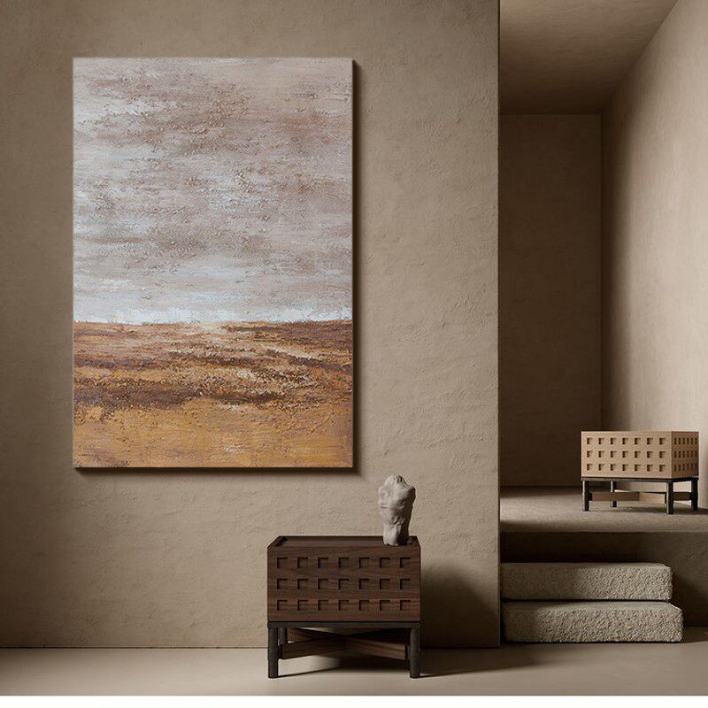 Pure Hand Painted with Silent Destitute Wind Oil Painting Genguan Living-room Vertical floor Decorative Painting Sofa background Dramatic Abstract Painting