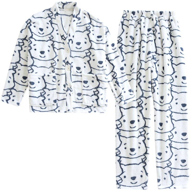 Coral velvet lady autumn flannel thickness plus heating winter warm men's home suit V-collar cartoon suit