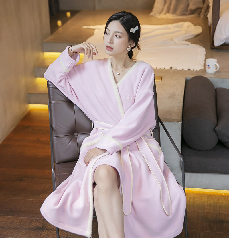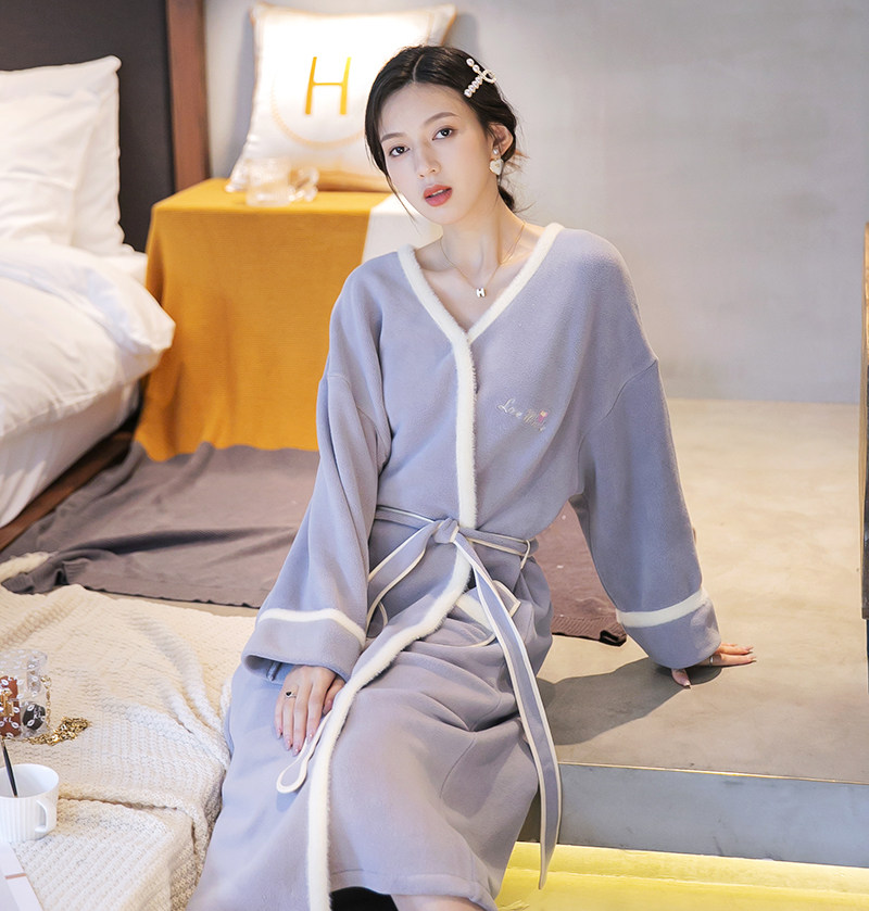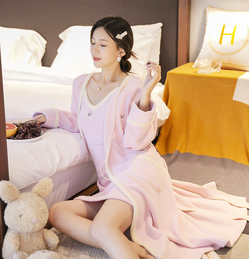 2021 New Sleepwear Woman Autumn Winter Coral Fleece Plus Suede Thickened Winter Sleeping Dress Long Version Plush Sleeping Robe Bathrobe
