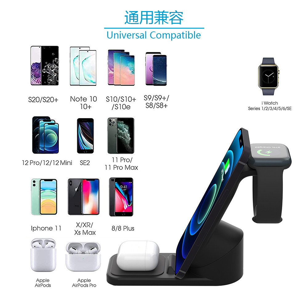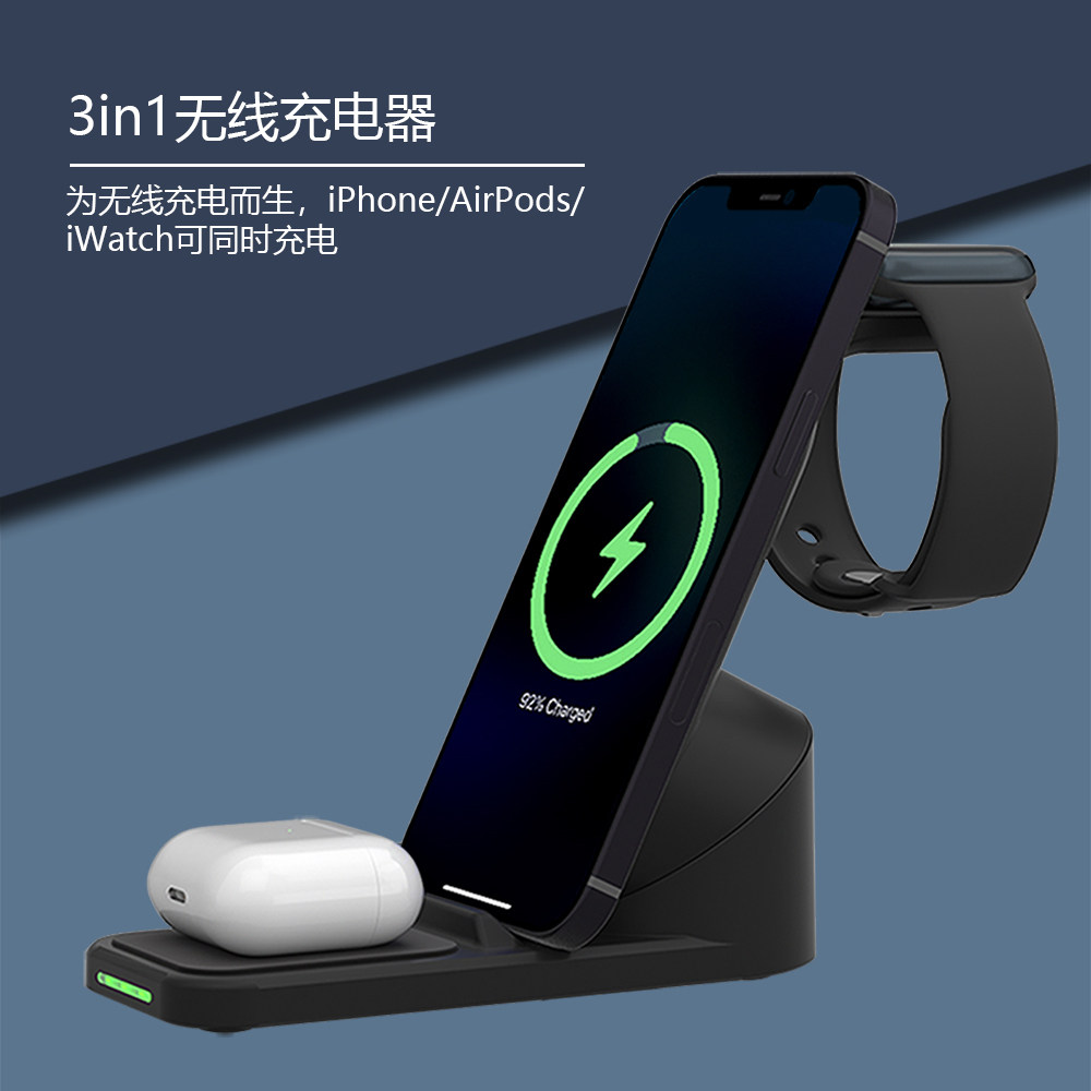 3-in-1 Wireless Charger for Apple iPhone 15W Base Apple Watch Multi-function Charging Stand
