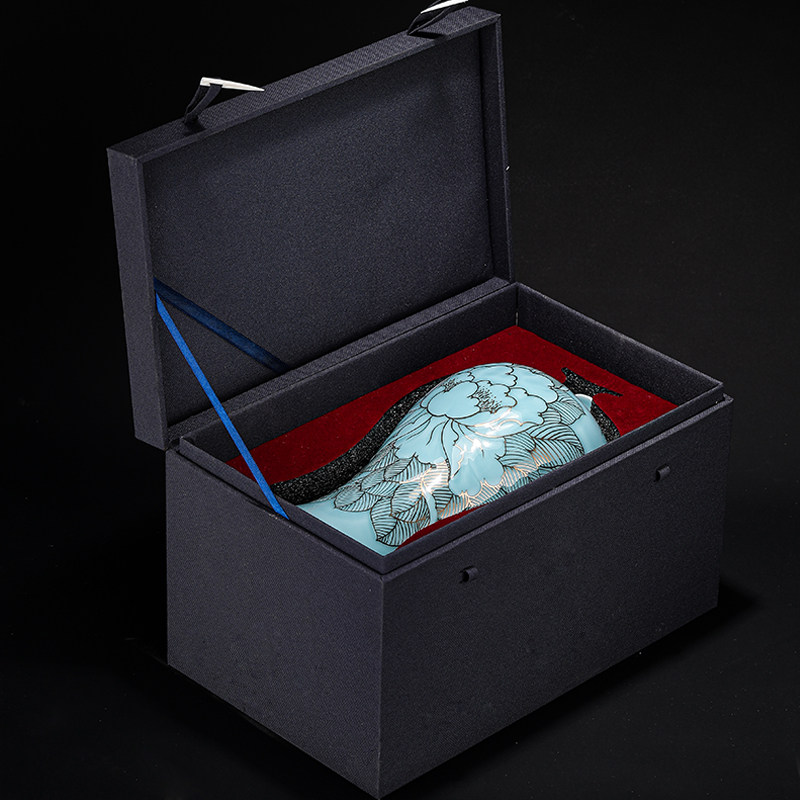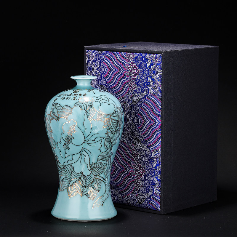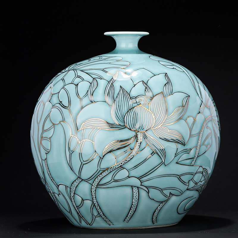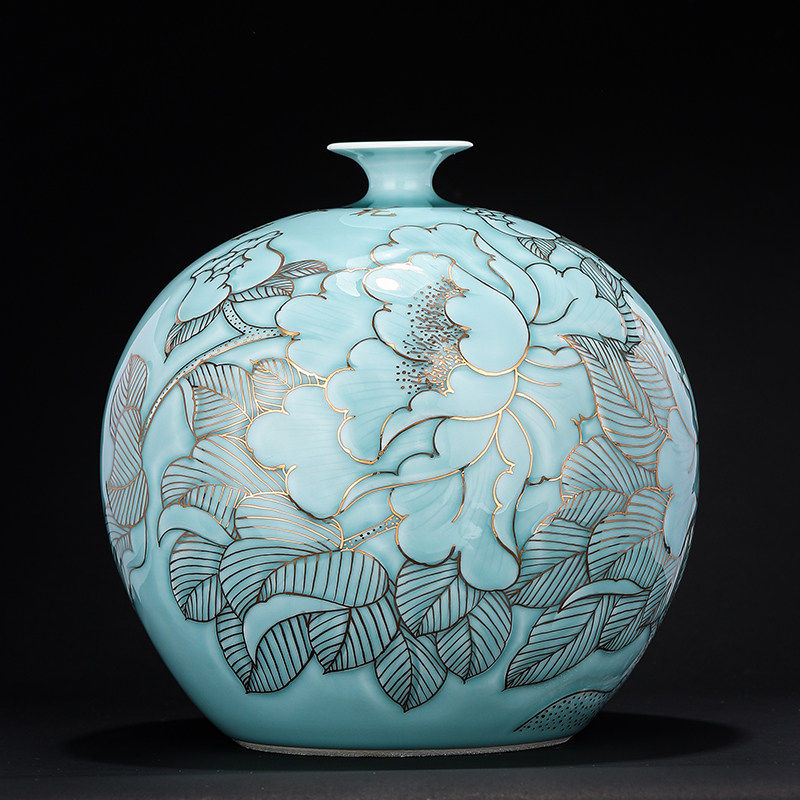 Jingdezhen Ceramics New Chinese Sculpture Celadon Drawing Gold Ornament Chinese Living Room Porch Home Decorations
