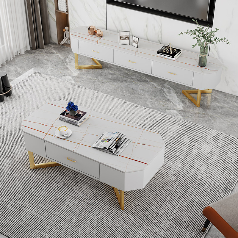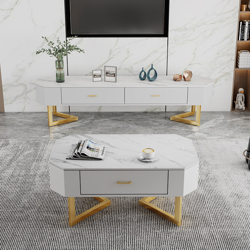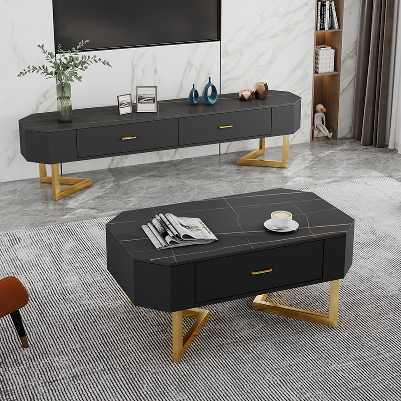 Light Extravagant Modern Tea Table Small Family Type Living Room Rock Plate Iron Art Minima Nordic Home Square TV Cabinet Composition Table