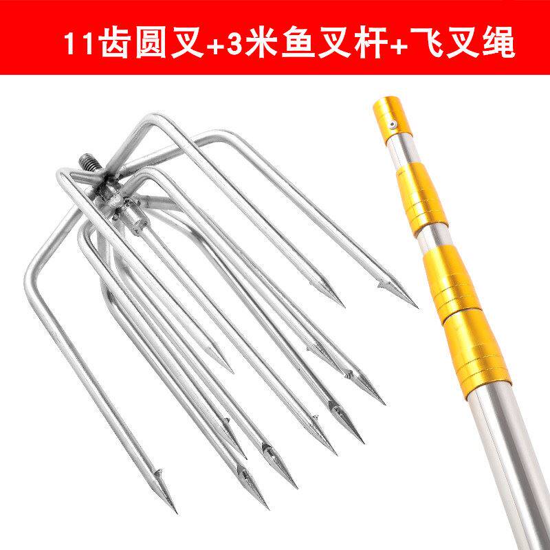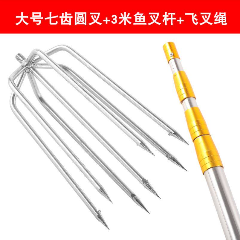 Positioning plus coarse thickening Telescopic Fish Fork Rod Stainless Steel Bailing Rod Bird Rod Fishes Fishing Nets Seven Teeth Fish Fork Heads