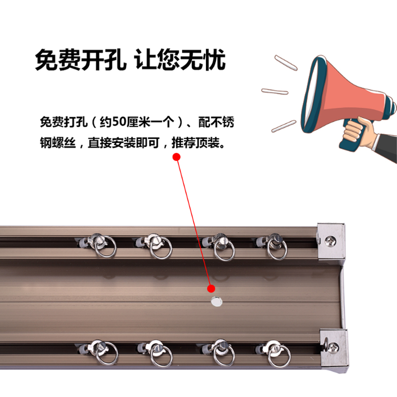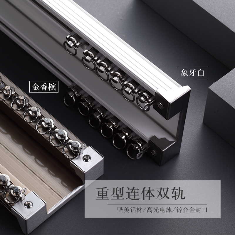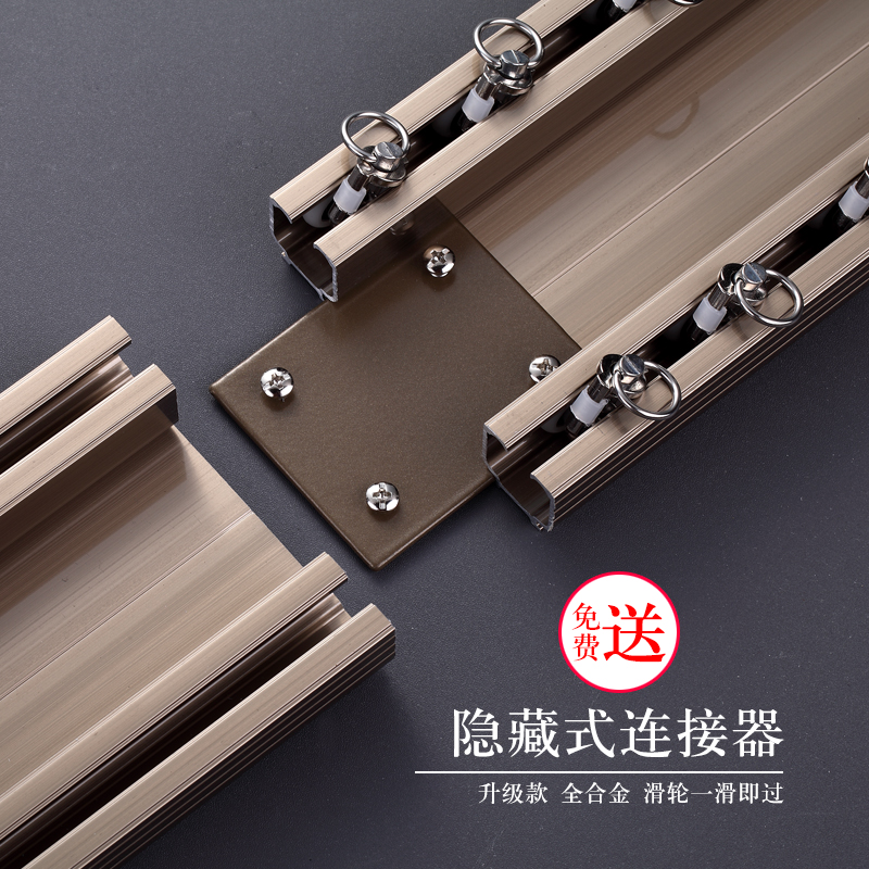 Heavy thickened curtain track Even body double track top-mounted floating window muted chute metal wheel window curtain rod slide rail accessories