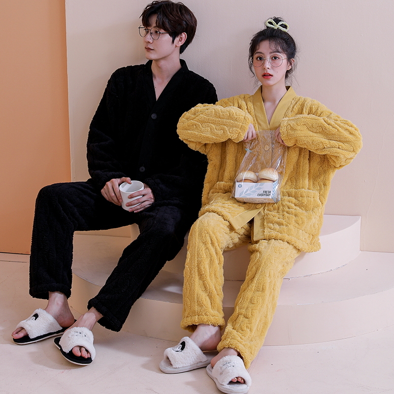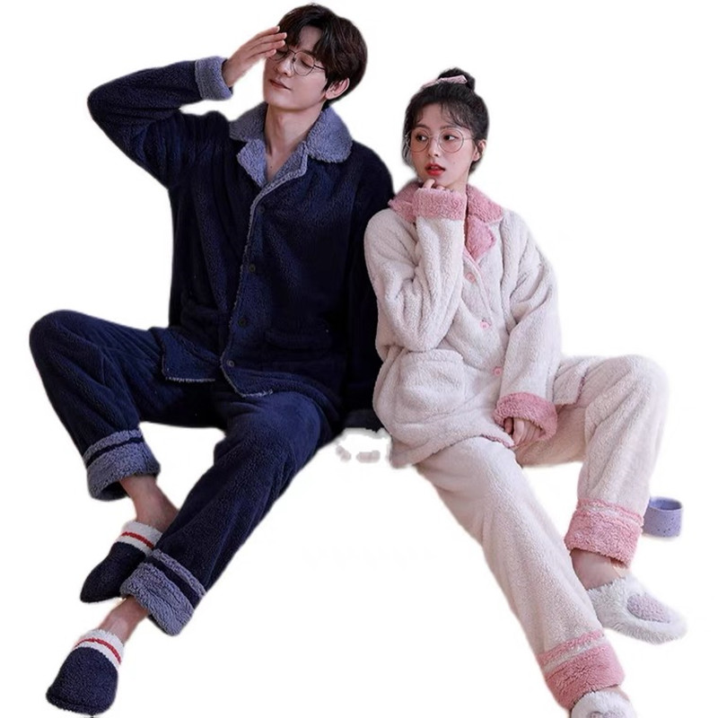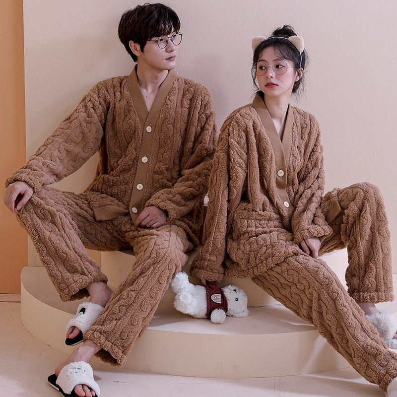 Coral fleece lovers pajamas winter women's plus velvet thickened large size flannel men's autumn and winter home service suit