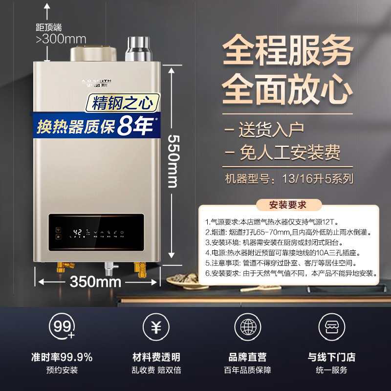 AO Smith 13 liter TM5 home gas water heater durable upgrade safe home thermostatic natural gas 13L-Taobao