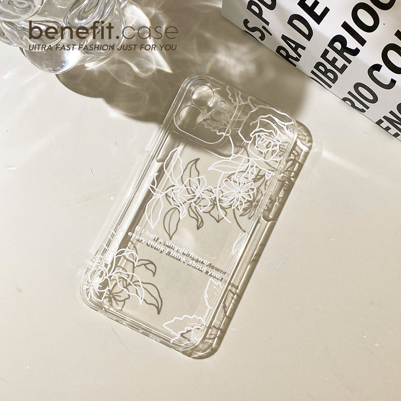 Benefit brief retro line applies Apple 13promax mobile phone protection shell iphone12mini protective sleeve xsmax flower xr hollowed-out 8plu