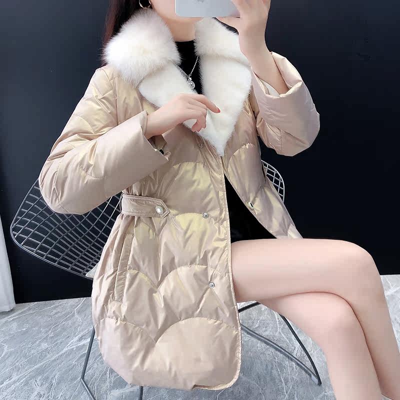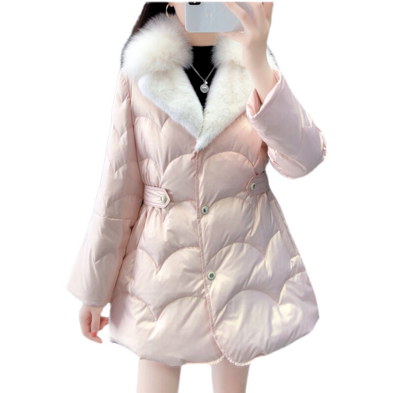 2021 Winter New Feather Costume Long - range Surf Feather Fox Young Fur Warm Haining Coat