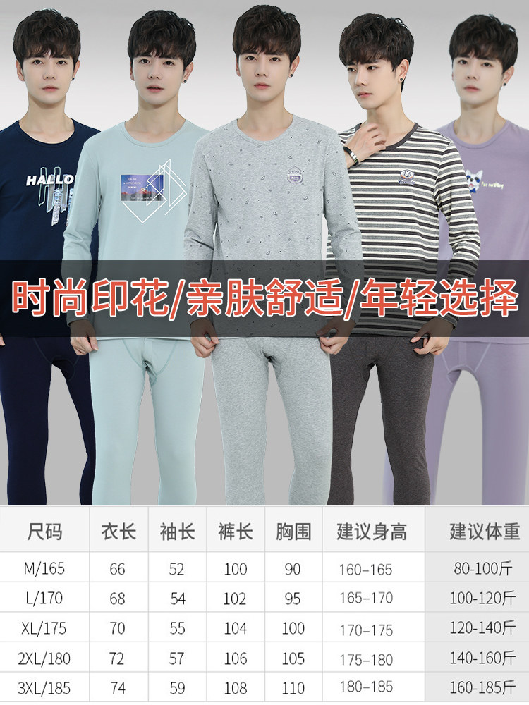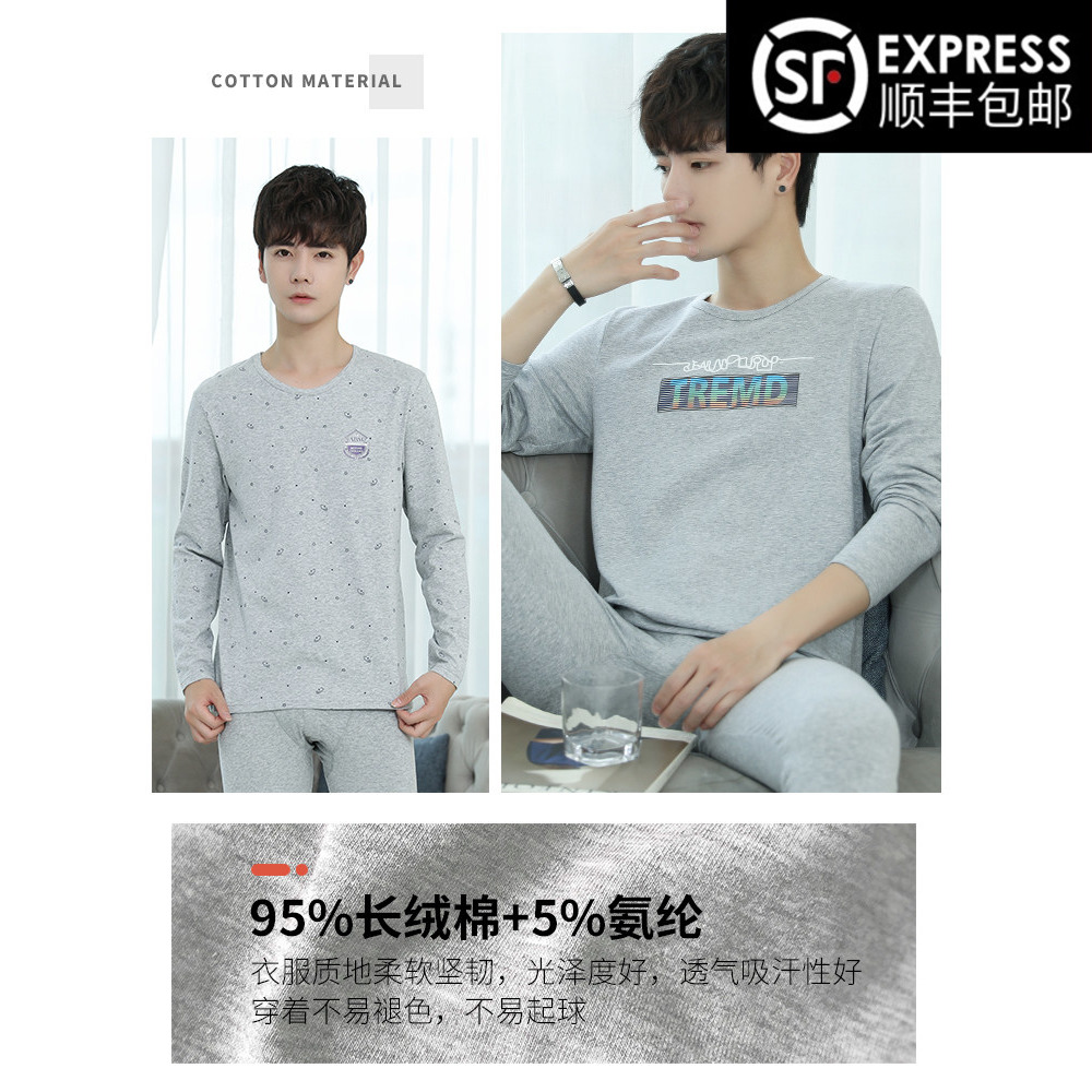 Men's warm underwear for men's autumn winter pure cotton elastic body for youth thin section full cotton large size for autumn clothes sanitary pants suit