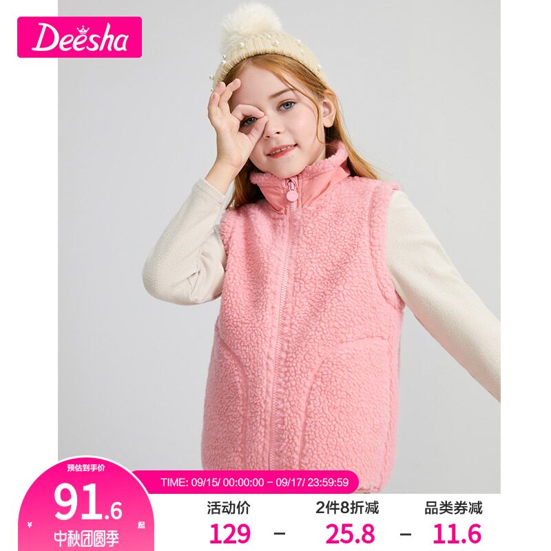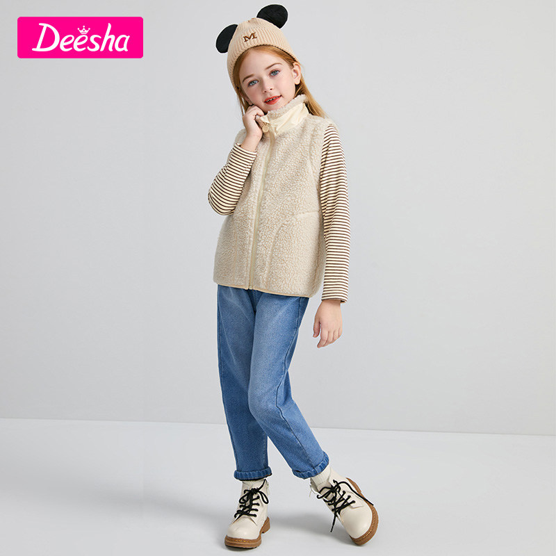 Desha children's clothing girl vest 2021 autumn and winter new children's Joker lamb plush warm vest